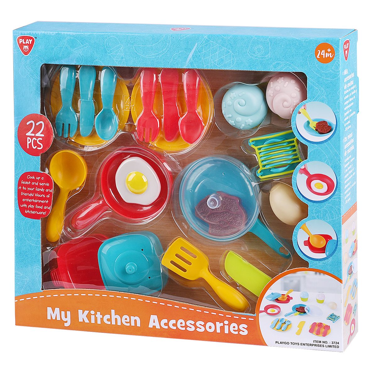הכינו סעודה והגישו אותה למשפחה ולחברים שלכם! שעות של בידור עם אוכל משחק וכלי מטבח! כולל 22 חלקים כגון: צלחות, סכו"ם, מחבתות, סירים, אוכל ועוד. זוהי בחירת מתנה אידיאלית עבור שפים מתחילים. מתאים לגילאי 2+ . ארץ ייצור: סין. גודל המוצר בס"מ: 43*7*38.