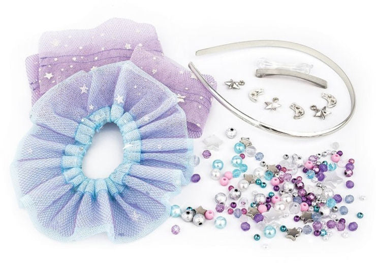 ערכת יצירה מהפנטת מבית Nebulous Stars לעיצוב סרטי שיער מנצנצים מבד טול.