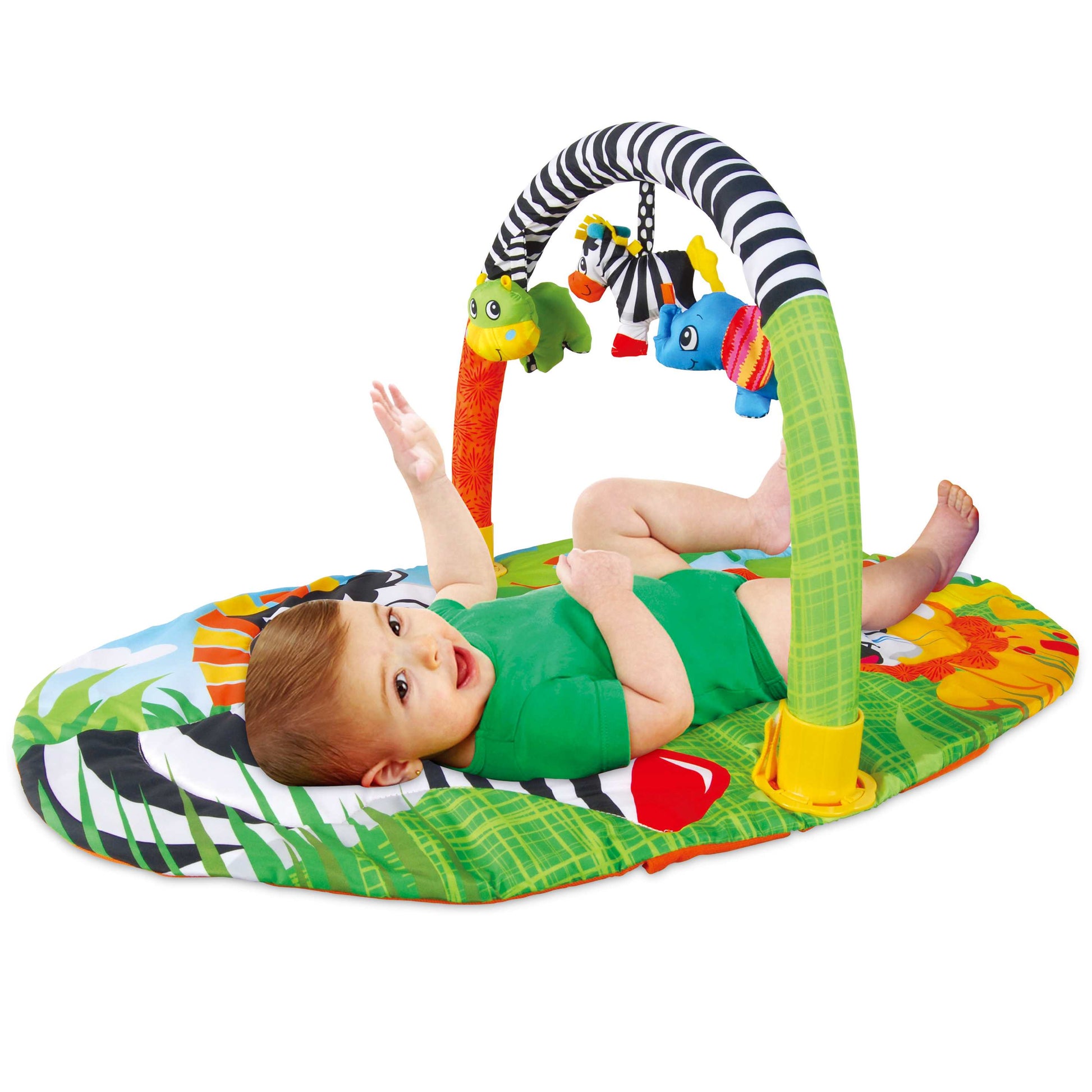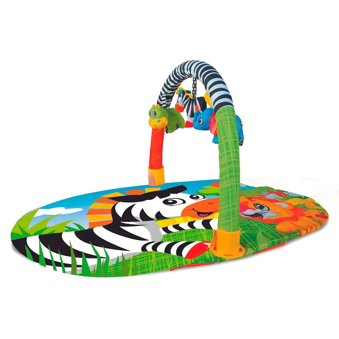 אוניברסיטה צבעונית בעיצוב חיות עם קשת צעצועים מבית המותג FITCHBABY. מתאימה לפעוטות מגיל לידה. האוניברסיטה כוללת משטח פעילות צבעוני ומעוצב וקשת מובייל עם 3 צעצועי בד תלויים שיהפכו את החוויה עבור התינוק למהנה אף יותר. המשטח הצבעוני רך ומרופד, התינוק יכול לשכב על גבו כשהקשת עם צעצועי הגירוי בטווח ראייתו, בזמן שהוא מפעיל את רגליו וזרועותיו בניסיון להגיע אליהם. ניתן לעשות זאת גם בתנוחת שכיבה על הבטן או בישיבה. ניתן להסיר את הקשת כדי להשתמש במשטח באופן עצמאי. המשטח קל לניקוי ולנשיאה ממקום למקום. האוניברסיטה תורמת לפיתוח הקוארדינציה, מוטוריקה גסה, מיומנויות חושיות, השמיעה, הראייה, המישוש תוך נגיעה בחלקים שונים והזיכרון, מעורר את הדמיון, את הסקרנות והגילוי, עוזר בהתפתחות הרגליים תוך תרגול בעיטות לכיוון הצעצועים הנתלים ומשפר את התקשורת בין הורה לילד. זוהי מתנה אידיאלית לתינוקות! הרכבה פשוטה. קל לאיחסון. ארץ ייצור - סין. הקשת עשוייה מפלסטיק. הרכב בד - 100% פוליאסטר. מידות המוצר : 41*57*93 ס"מ. מידות האריזה : 45*51.5*56 ס"מ
