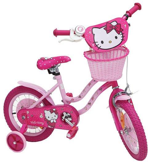 אופני הלו קיטי,גודל 14 אינץ' מבית אנונימה. האופניים כוללים גלגלי עזר ומעצורי יד, מושבים ניתנים להטיה וגלגלים עבים. מגיע עם סל.
