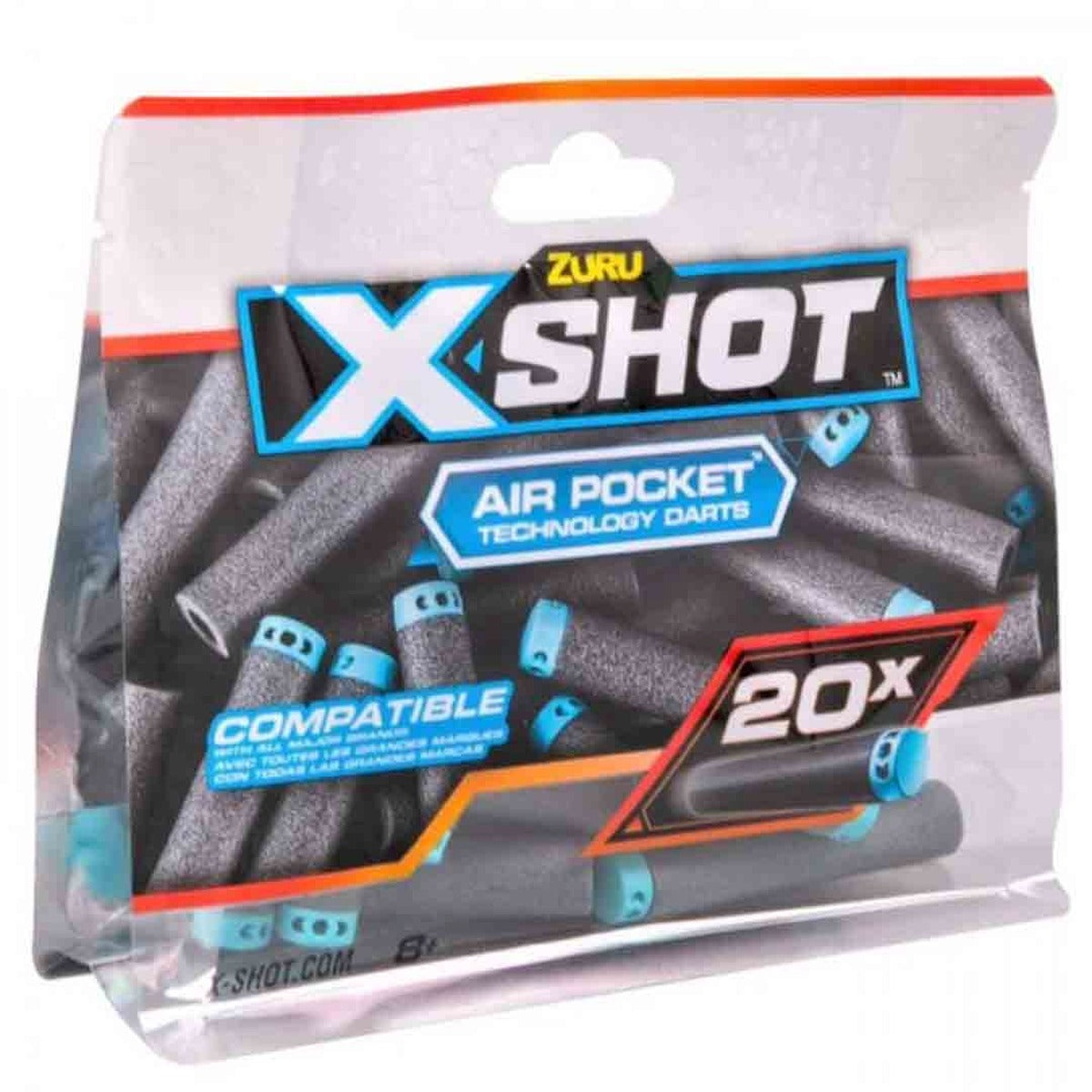 שקית מילוי מקורית של XShot עם 20 חיצי ספוג איכותיים בטכנולוגיית Air Pocket לדיוק וטווח משופרים.