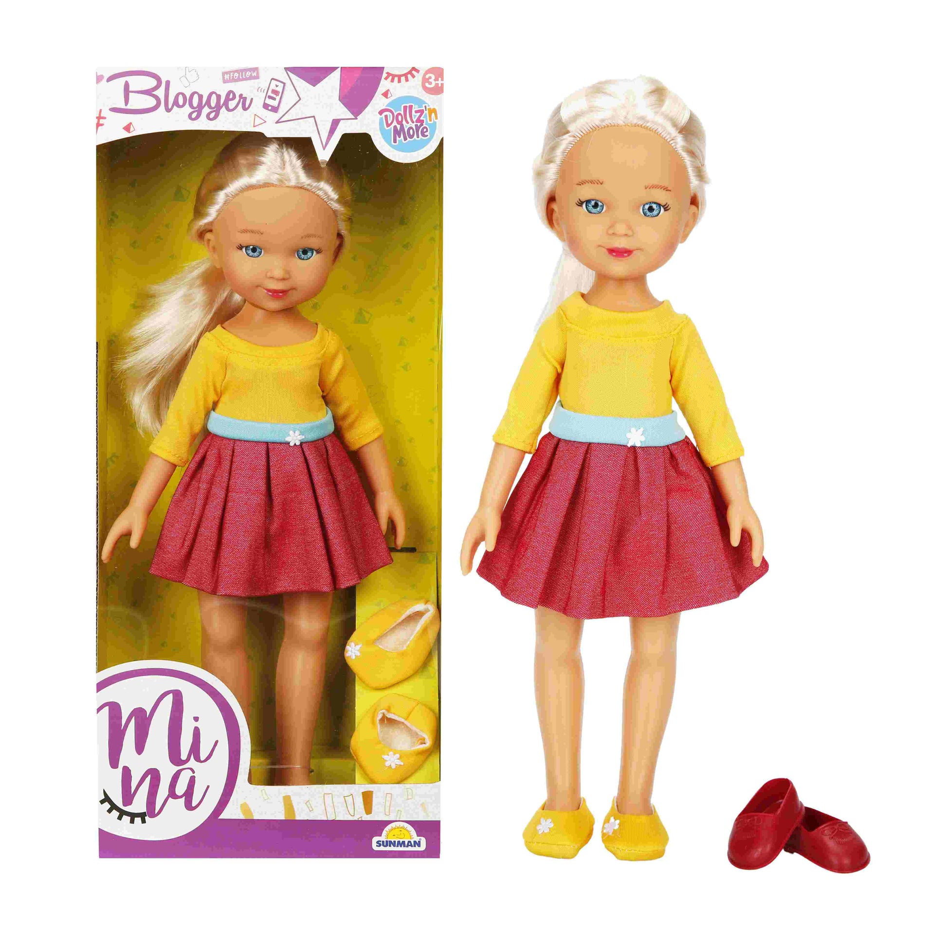 בובה מינה הבלוגרית 35 סמ. לגילאי 3 שנים ומעלה. מידות האריזה: 17X9X37.5 ס"מ. חומר- פלסטיק.
