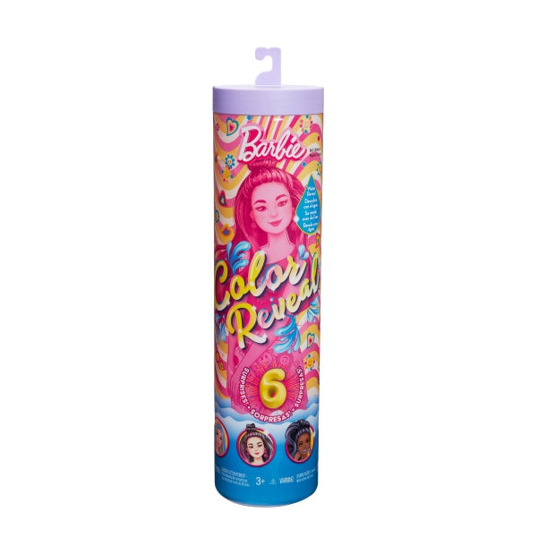 בובות ברבי Color Reveal מספקות חווית פתיחה מלאה עם 6 הפתעות! סדרה זו בהשראת קשת בענן. מקבלים אחת מארבע בובות ייחודיות - לכל אחת שיער ארוך עם פס צבע עז ומדבקה חמודה בהשראת אופנת שנות ה-60. הפכו את המדבקה עם מים קרים וחמים לרגע מדהים! איזו בובה תחשפו? האביזרים כוללים חצאית עם דוגמה תואמת, נעליים צבעוניות, מברשת פרחים ועגילים מגניבים. השתמשו באריזה לאחסון פריטים אלה ואחרים. איספו את כולם לשילוב מהנה. כל אחד נמכר בנפרד, בכפוף לזמינות. הבובות אינן יכולות לעמוד בפני עצמן. הצבעים והעיטורים עשויים להשתנות.