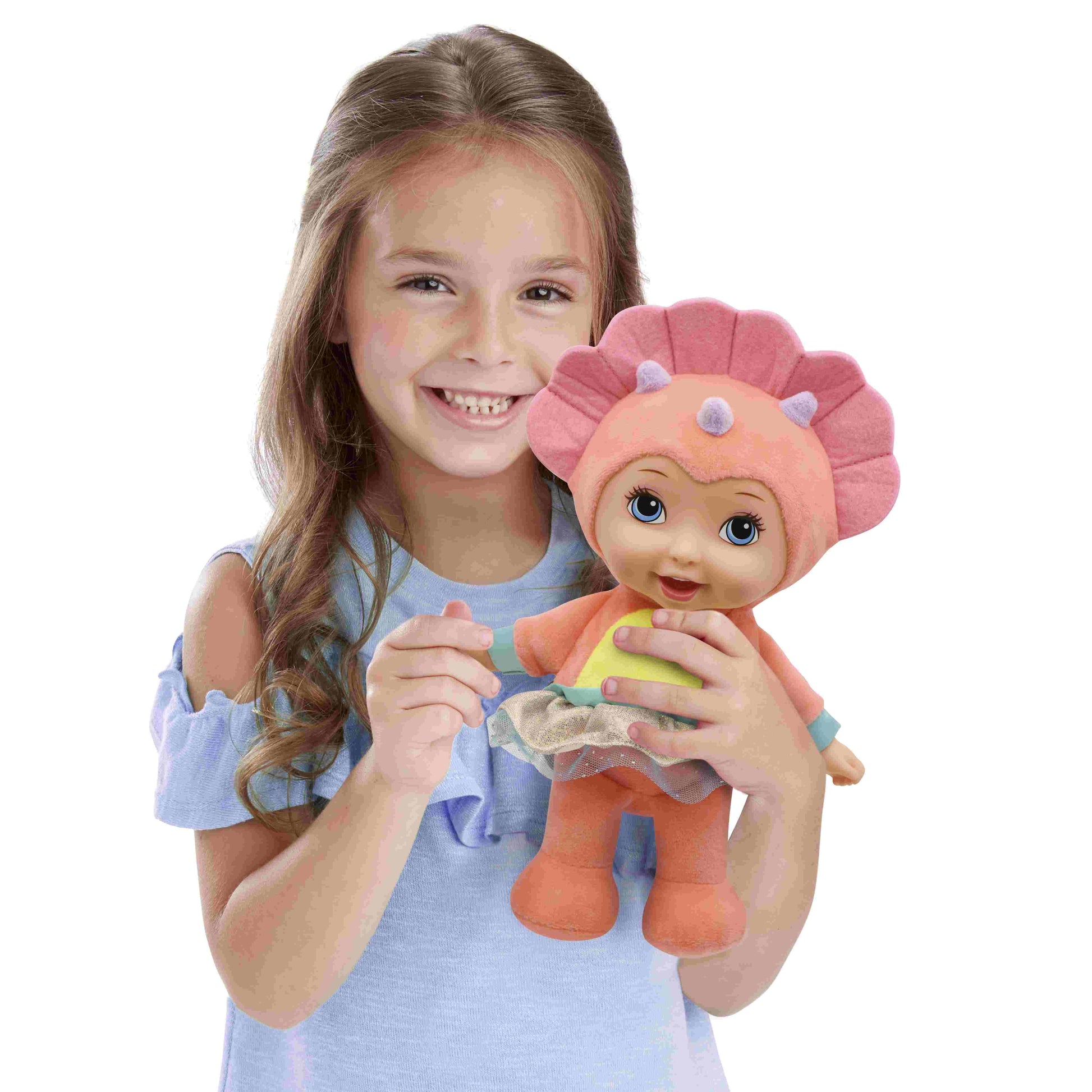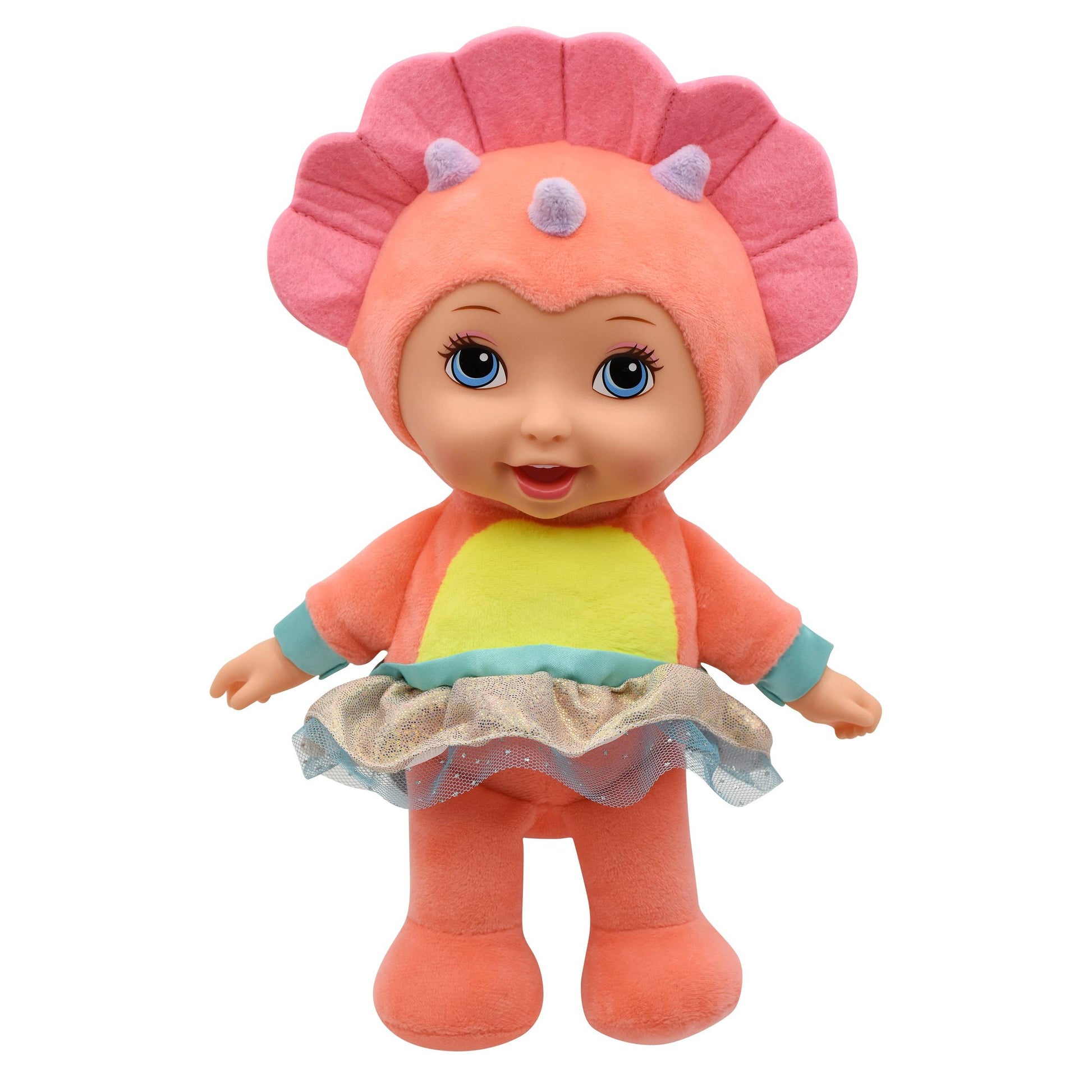 בובה מתוקה ורכה בגודל 27 ס"מ עם תלבושת דינוזאור. הבובה משמיעה צלילים שונים וקסומים! הפנים והידיים של הבובה עשויים מפלסטיק, גוף הבובה עשוי מבד רך. מומלץ לגילאי שנתיים ומעלה. נדרשות 3 סוללות LR44 (כלולות- להדגמה. יש להחליף את הסוללות לאחר רכישת המוצר). ארץ ייצור- סין חומר- פלסטיק ובד. • מידות המוצר בס"מ: 25*7*13.
