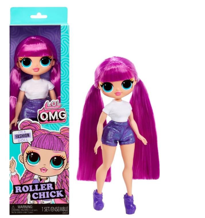 הכירו את רולר צ’יק! בובת אופנה בגובה 27 ס’’מ, בעלת שיער ארוך, צבעוני ומעוצב. הבובה לבושה בחולצה לבנה ומכנסיים סגולים, ונועלת מגפונים בצבע תואם למכנסיים. גילאי: 4+ / מידות: 27.94X8.89X6.99 ס"מ / ארץ ייצור: סין