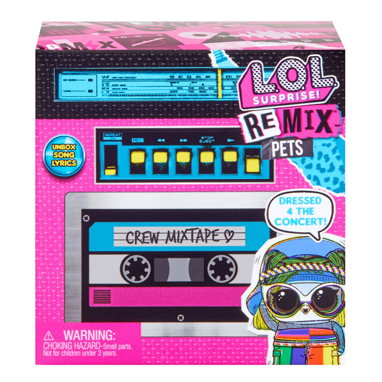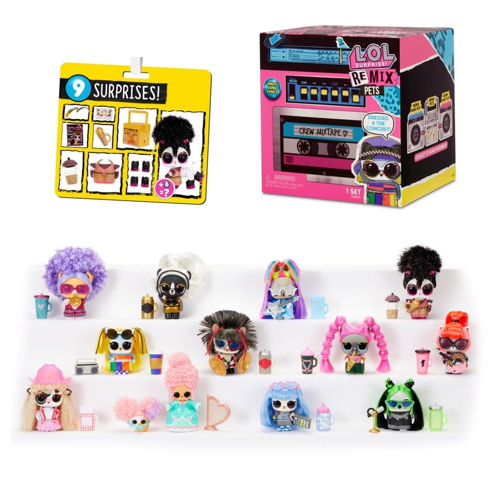 הפתעת לול רימיקס חיות! גלו את בובת חיית הלול שלכם! כל בובה מגיעה עם שיער מיוחד שאפשר לסרק. לחיות אסור היה להגיע אל הקונצרט,אז כל חיה לבשה תחפושת מיוחדת, בסגנון מוזיקה שונה, לכל חיית מחמד! כל קופסה מכילה 9 הפתעות שונות, הכוללות: בובת חיה של לול, עם שיער, תלבושת מיוחדת, מדבקה מיוחדת המסתתר בתוך האריזה של הלול ועוד מגוון אביזרים. *קיימות 12 בובות הפתעה לאיסוף. כל קופסא מכילה בובת הפתעה 1.