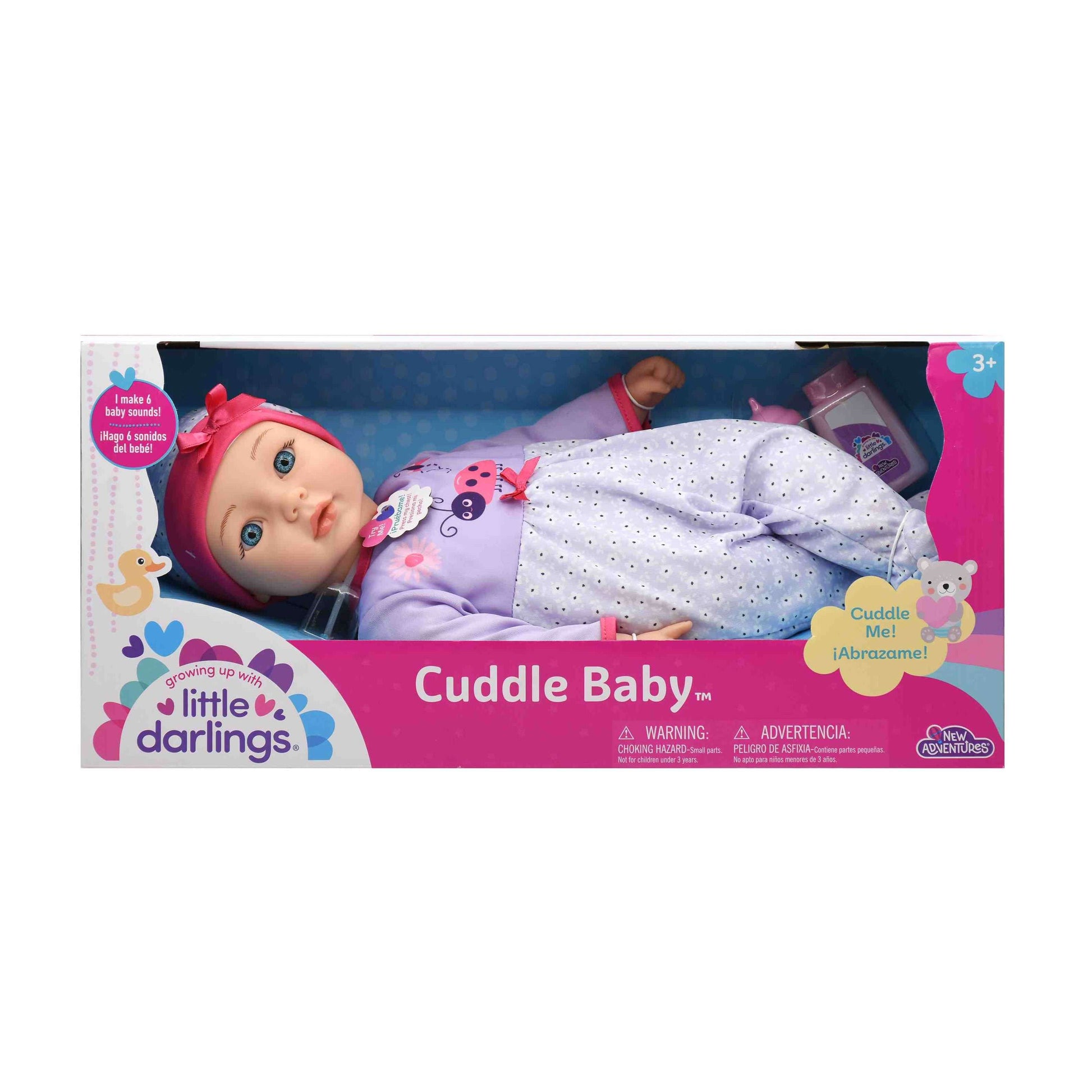 בובת תינוק מתוקה ורכה בגודל 48 ס"מ • זוהי הבובה המושלמת לחיבוקים והתכרבלות! התינוקת משמיעה קולות שונים. פשוט לחצו על החזה שלה כדי לשמוע 6 צלילי תינוק שונים! מעודדת את התינוקות לפתח חיבור רגשי. • כוללת גם קופסא קטנה ובקבוק. התלבושת ניתנת להסרה. • ניתן לנקות את הבובה באמצעות מטלית לחה. • ראש הבובה, כפות הידיים והרגליים עשויים מפלסטיק. גוף הבובה עשוי מבד רך • מומלץ לגילאי 3 שנים ומעלה. • נדרשות 3 סוללות LR44 (כלולות- להדגמה. יש להחליף את הסוללות לאחר רכישת המוצר).• ארץ ייצור- סין • חומר- פלסטיק, בד. • מידות האריזה: 16.5*21.6*47 ס"מ