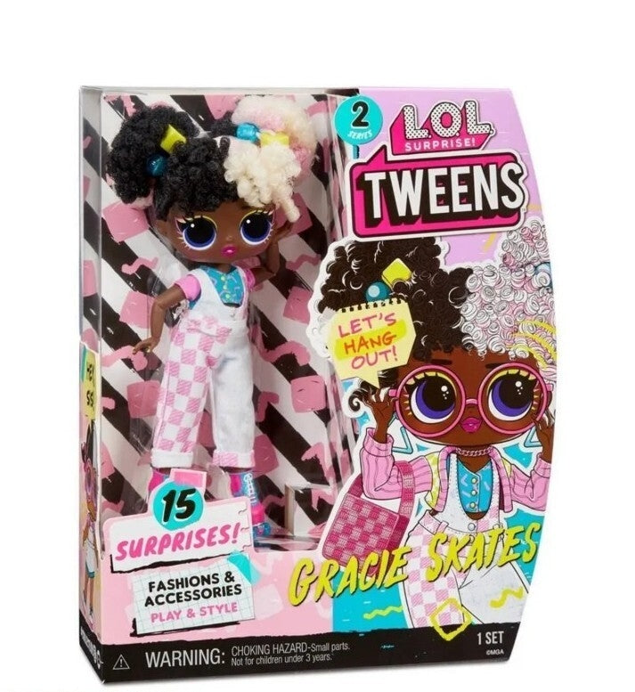 בובת LOL Tweens גרייסי סקייטס היא בובה אופנתית ומלאת סטייל מסדרת ה-Tweens הפופולרית. הערכה כוללת 15 הפתעות שונות, בגדים ואביזרים צבעוניים, ומתאימה לילדים מגיל 3 ומעלה. מושלמת למשחקי דמיון ואיסוף.