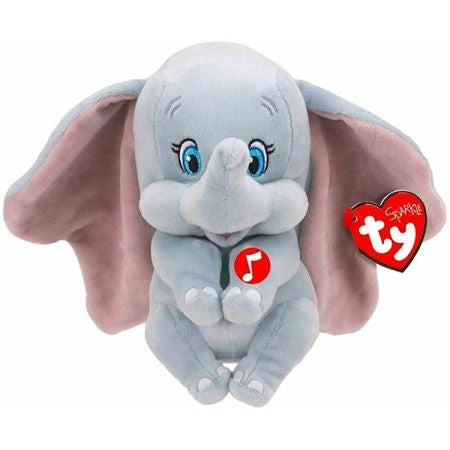 בובת TY רכה של דמבו הפיל האהוב, עם אוזניים גדולות וחיוך מתוק! בלחיצה היא משמיעה מנגינה נעימה, מה שהופך אותה למתנה מושלמת לילדים ולאספנים שאוהבים קסם ורכות.