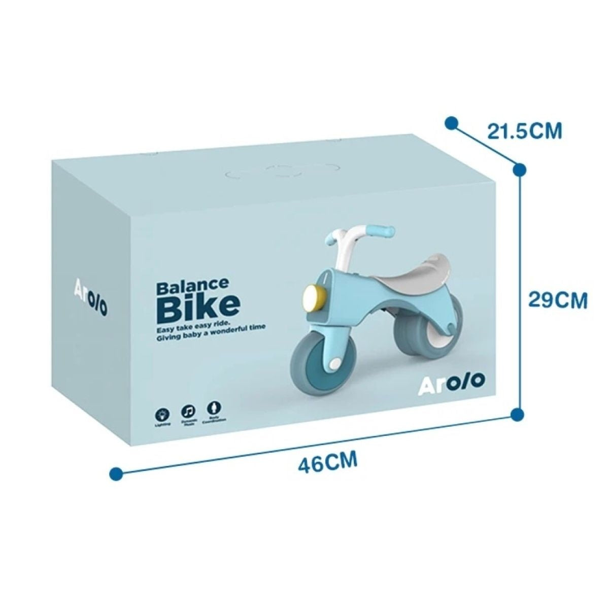 בימבה אופני איזון לפעוטות תכלת מבית המותג "Arolo". תעניק לילדכם חווית נסיעה מהנה! הבימבה מסייעת באימון ופיתוח יכולות מוטוריות, חיזוק שרירי הרגליים, קואורדינציה, שיווי משקל ותנועה. הבימבה אופנוע כוללת מושב משולב עם ידית לנשיאה קלה, כידון היגוי בעל 2 ידיות לאחיזה נוחה, גלגלי גומי גדולים ותאורה בפנס הקדמי. משמשת גם לתרגול הרכיבה וכאופני איזון המכינות לרכיבה על אופניים. נדרשת הרכבה (על ידי מבוגר בלבד). מתאימה לפעוטות מגיל 12 חודשים ועד 36 חודשים ובמשקל מקסימלי של עד 25 ק”ג. נדרשות 3 סוללות AA (לא כלולות- לרכישה בנפרד). המוצר בטיחותי לשימוש. אינו רעיל. עשוי מפלסטיק איכותי. מידות המוצר: רוחב 28 אורך 55 גובה 41 ס"מ. מידות האריזה : 29*21.5*46 ס"מ.