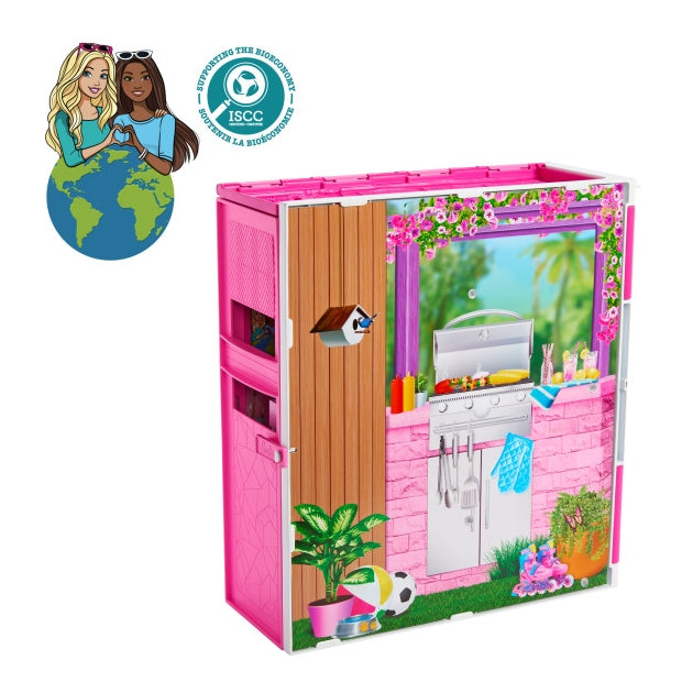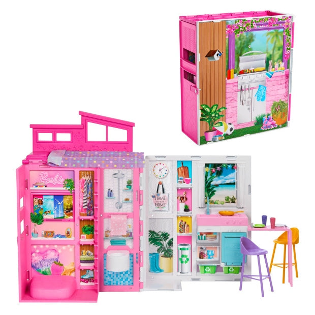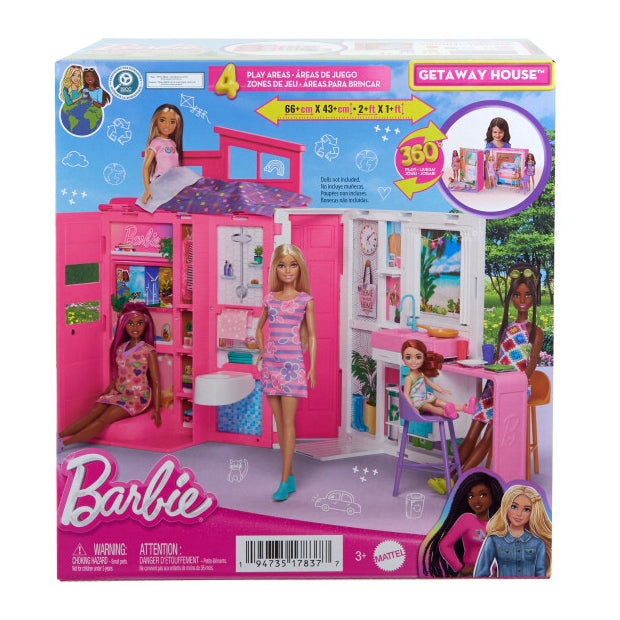 בית בובות ברבי חמוד, צבעוני ומתקפל הנותן השראה לשפע של כיף ואינספור הרפתקאות מילוט! ישנם ארבעה אזורי משחק - מטבח, חדר אמבטיה, חדר שינה לופט ופינת סרט - כמו גם אביזרים מקסימים לקישוט. The Barbie Getaway House הוא מתנה מושלמת לילדים מגיל 3 ומעלה! הבובה לא כלולה. הצבעים והקישוטים עשויים להשתנות.