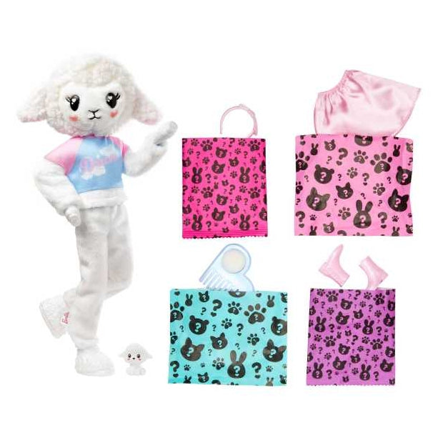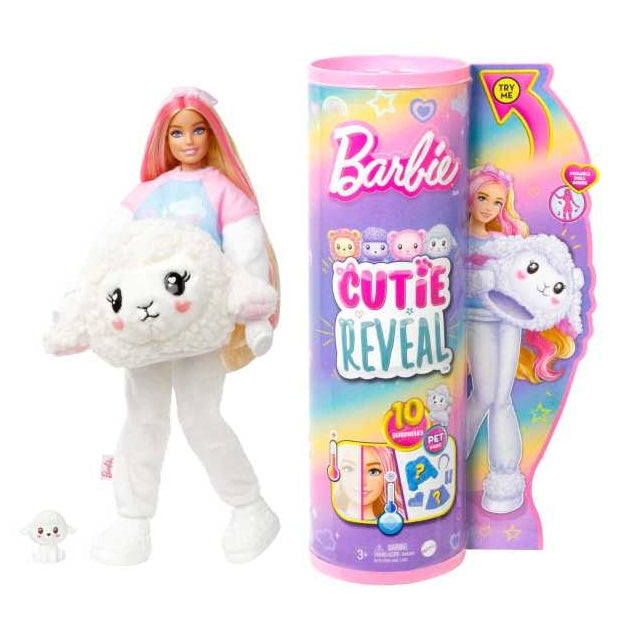 ברבי Cutie Reveal סדרת חיות פרוותיות - תחפושת כבשה. לבושה כמו חיה רכה ופרוותית. משחק שהוא כולו חוויה מפתיעה! כאשר תורידו את התחפושת - תגלו את ברבי בתלבושת המלאה והצבעונית שלה! האריזה כוללת גם מספר שקיות מסתוריות המכילות מגוון הפתעות ואביזרים להשלמת חוויית המשחק!
