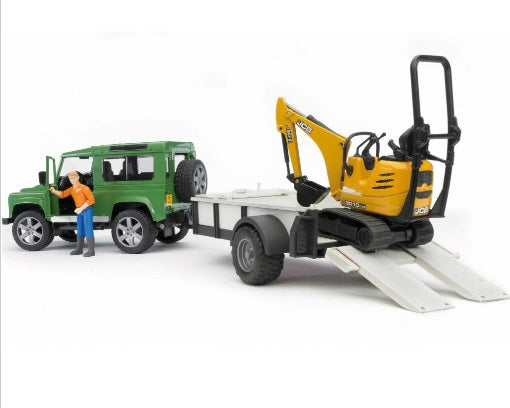 כולל ג’יפ Land Rover איכותי עם עגלה נגררת, דחפור JCB ובובת פועל.