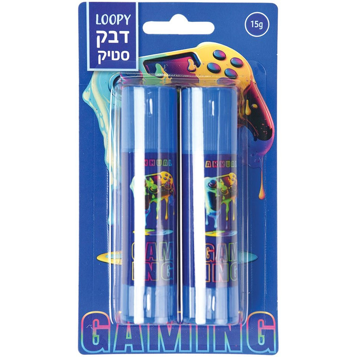 זוג דבקי סטיק איכותיים במשקל 15 גרם כל אחד, בעיצוב גיימינג צבעוני ומגניב. מושלם לבית הספר, למשרד או ליצירה. נמרח בקלות ומדביק בצורה נקייה וללא לכלוך.