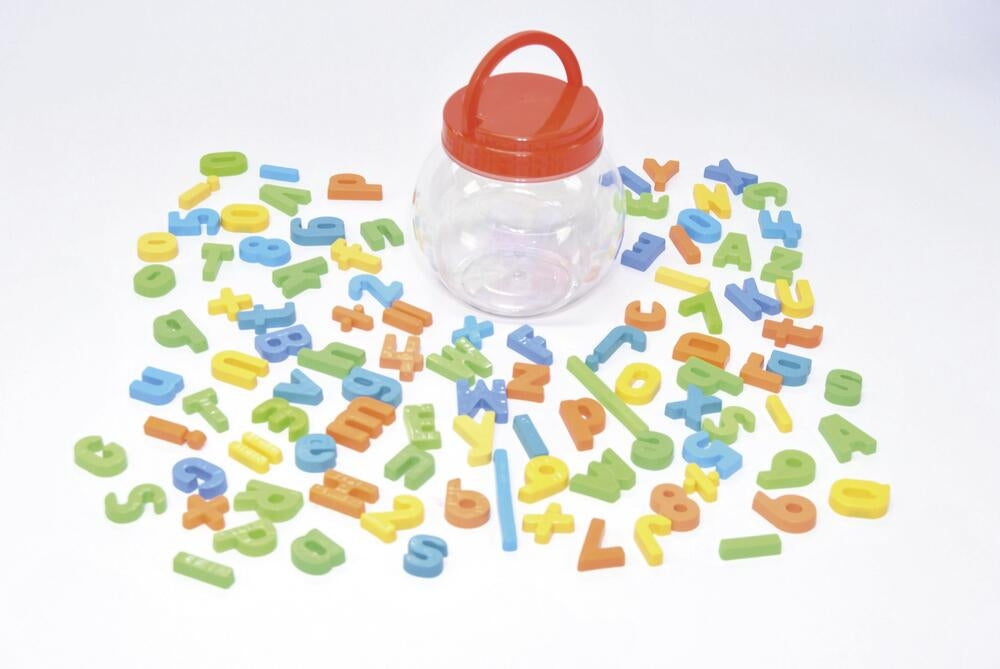 ערכת משחק 100 חלקים בדלי כולל אותיות מגנטיות (אותיות גדולות וקטנות באנגלית), מספרים וסימנים מתמטיים שונים. מיועד לגילאי 3 שנים ומעלה.