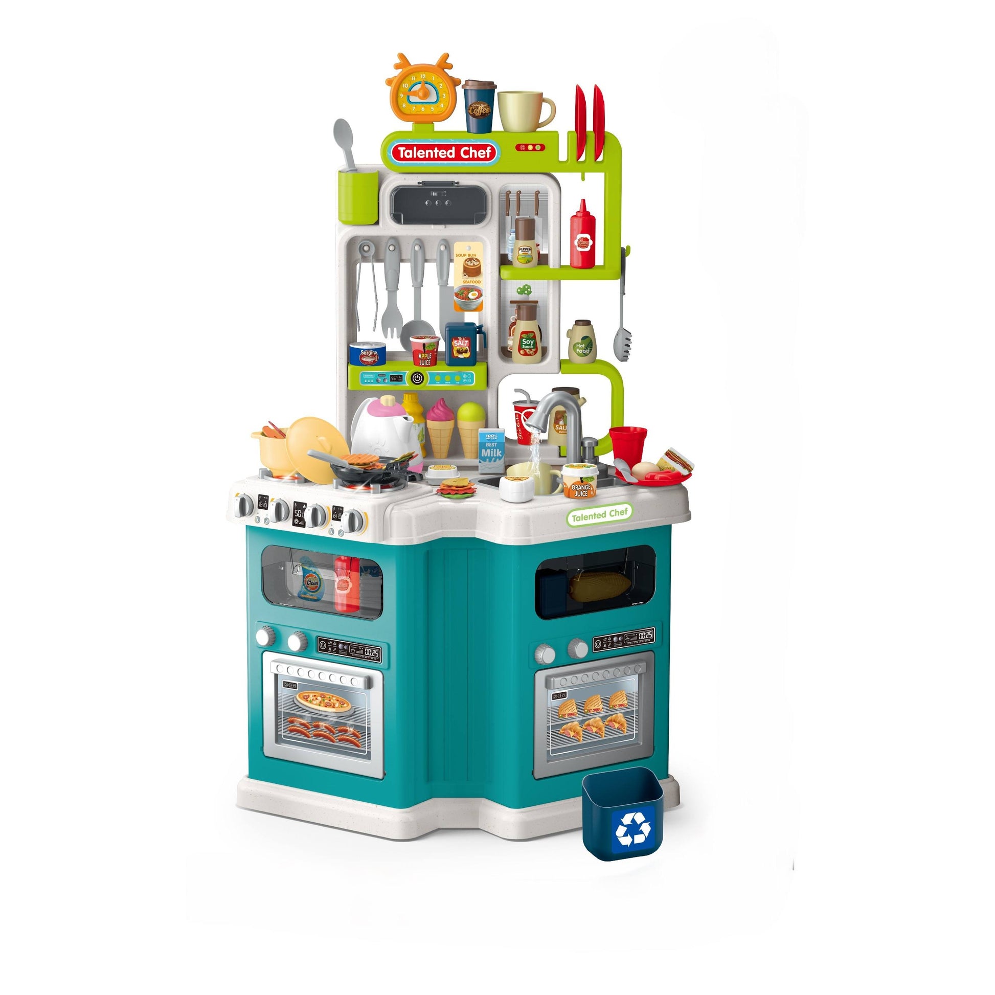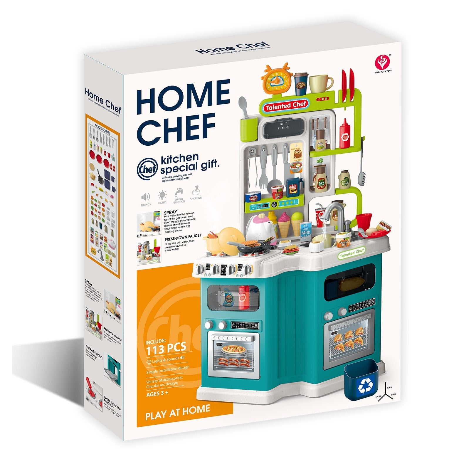 מטבח לילדים אורות וצלילים הכולל 113 חלקים מגוונים. בנוסף כולל אפקטים של אדים ומים. פתחו את תא האחסון בו ניתן לאחסן פריטים, עם שפע של אביזרים. הצעצוע הוא בגודל המושלם לילדים צעירים. נהדר למשחק דמיון ומשחק עם חברים. משחק זה מגביר את הכישורים החברתיים ומציג לקטנטנים את החיים האמיתיים ומדמה בצורה מושלמת חווית מטבח אמיתית. מתאים לגילאי 3+ שנים. נדרש 3 סוללות AA (לא כלולות -ניתן לרכוש בנפרד).