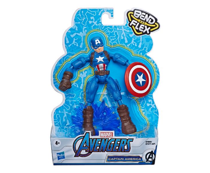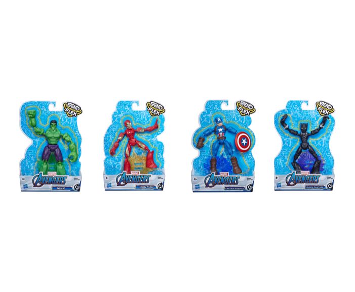 דמויות גמישות בגודל של 15 ס"מ מהדמויות האהובות של הנוקמים,איירון מן, קפטן אמריקה,הפנתר השחור והענק הירוק, כופפו אותם, הזיזו את הידיים והרגליים ליצירת תנוחת לחימה של הגיבורים האהובים , כולל אביזר ייחודי לכל דמות