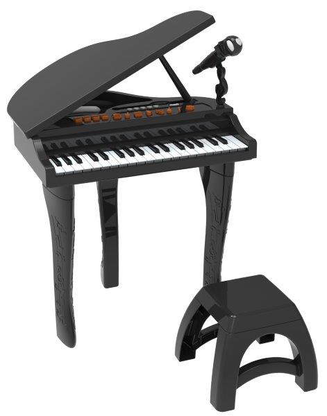 פסנתר שחור בעל מקלדת אלקטרונית עם 37 מקשים ואורות מהבהבים. מגיע עם מבחר של 8 כלים: פסנתר, גיטרה, עוגב,