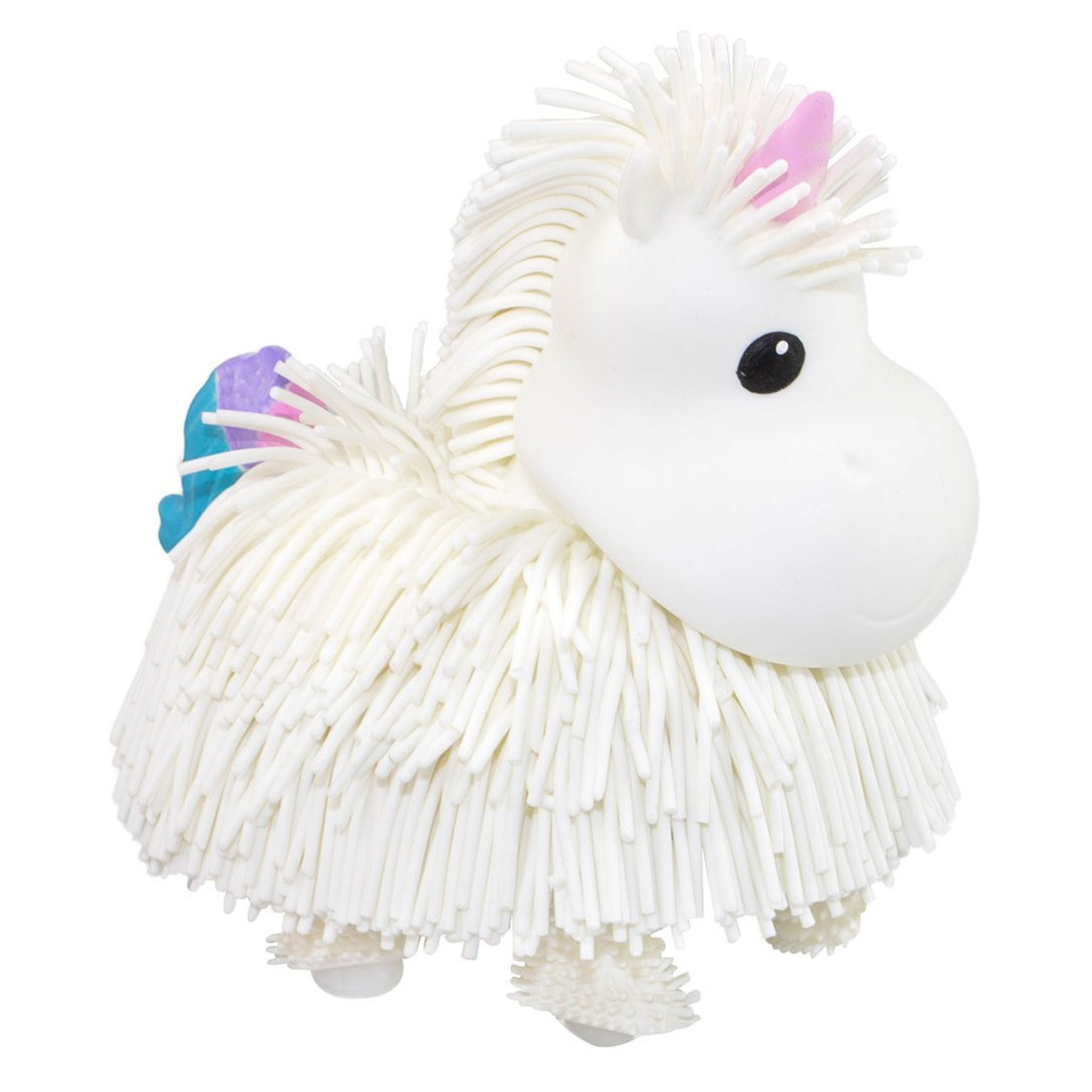 חד קרן אינטראקטיבי בצבע לבן JIGGLY PETS. כל הילדים מוזמנים לעולם הכיף של Jiggly Pets! נערו ורקדו עם חיית המחמד המתנועעות שלכם – חיית המחמד הולכת, רוקדת ומנענעת את אוזניה לפי הקצב של מנגינות נהדרות. התכוננו לרקוד עם חיית המחמד החדשה שלכם ותיהנו משעות של כיף והנאה! חיית מחמד חד קרן לבנה זו מגיעה עם תנועת גוף מלאה, מנגינות בלתי נשכחות ואפקטים קוליים. היא מנענעת את זנבה ומניפה את ראשה! הקישו על ראשה כדי להחיות אותה. חד הקרן מגיע עם שיער TPR נמתח במיוחד. חומר: TPR, פלסטיק. לגילאי 4 שנים ומעלה. נדרשות 2 סוללות AA (כלולות). מידות המוצר : 13.8*9*15 ס"מ. מידות האריזה : 17*11.5*18 ס"מ. מיוצר בסין.