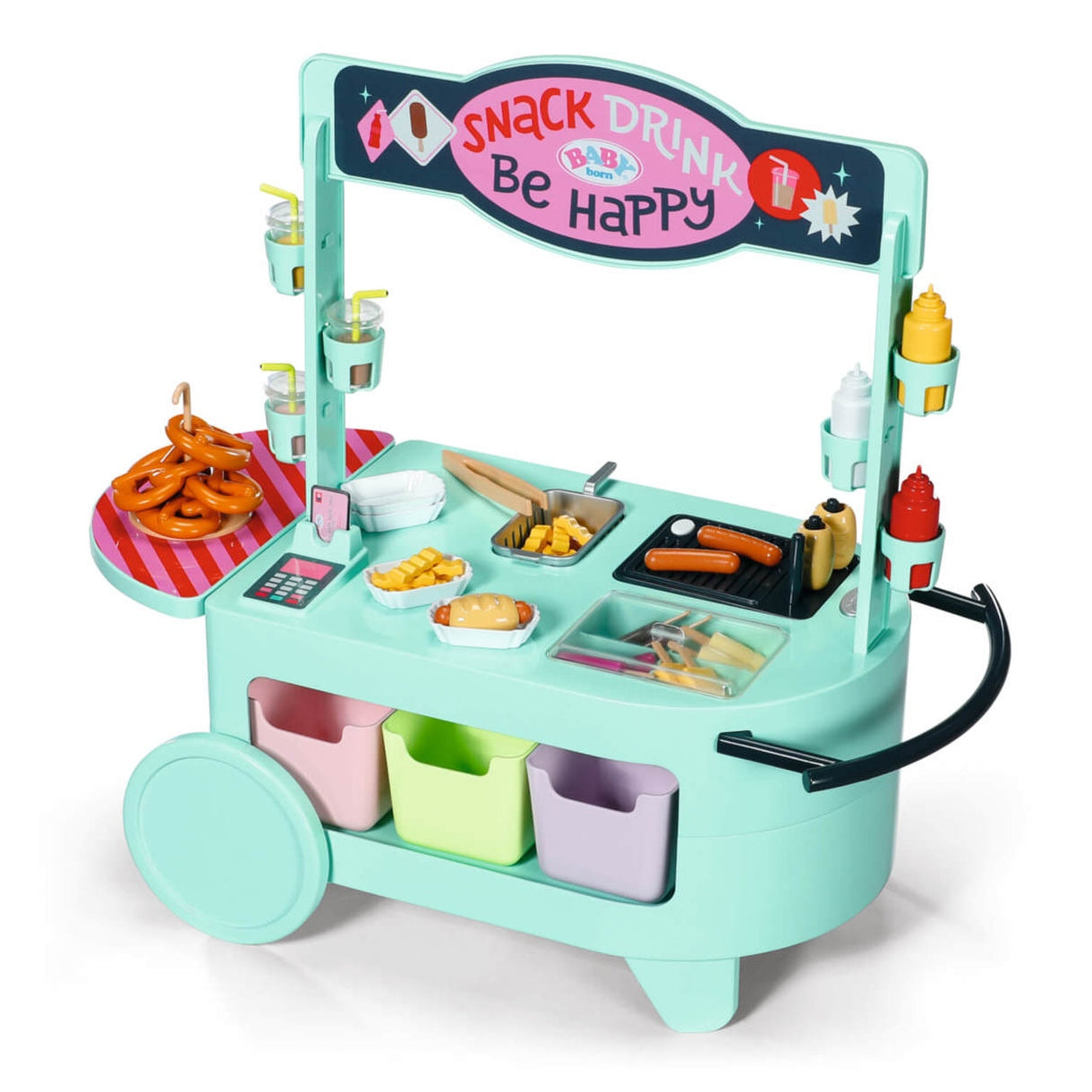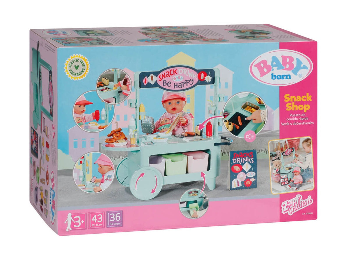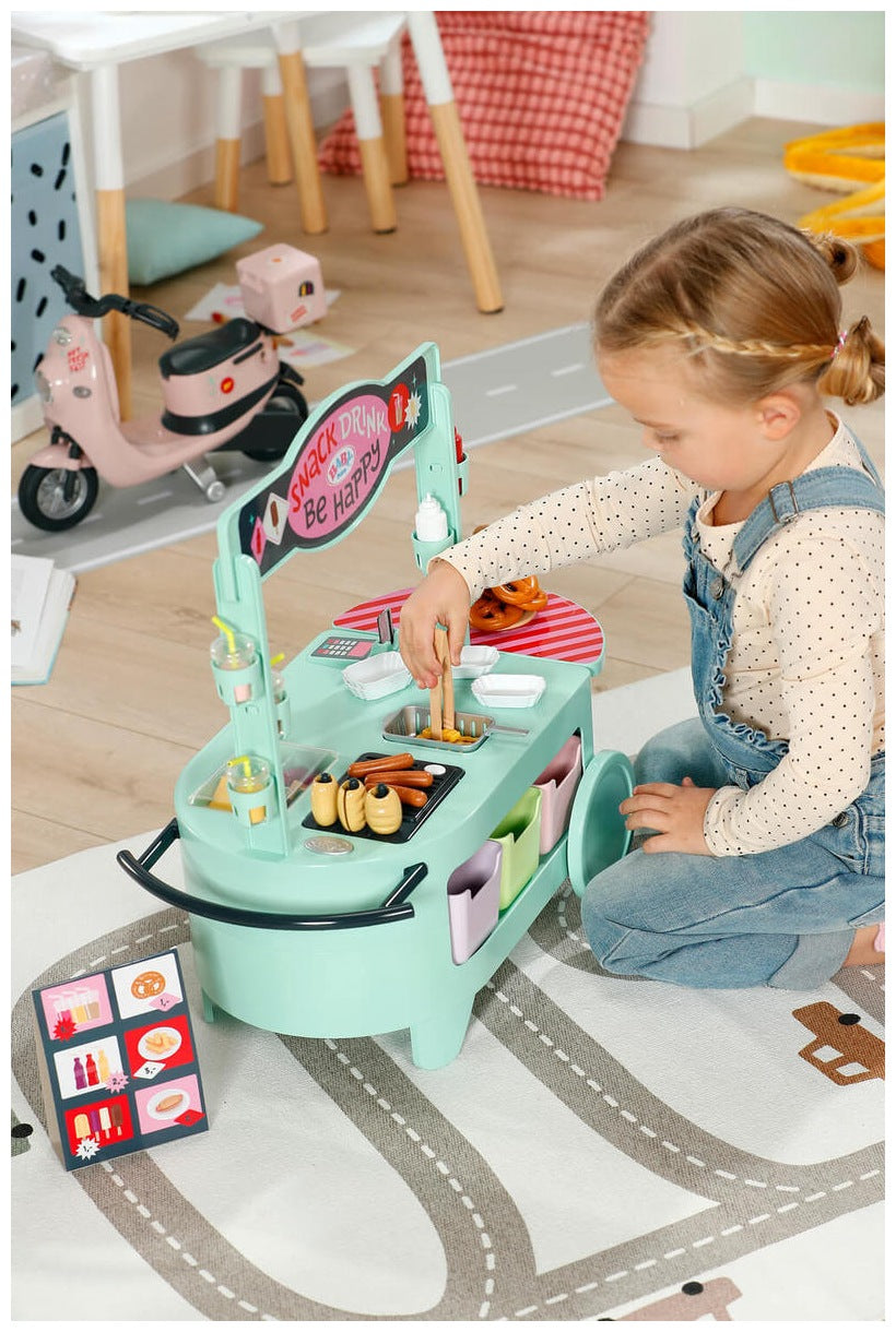 שומעים את הגריל רוחש? חנות החטיפים של בייבי בורן סוף סוף נפתחה! החנות מגיעה על גלגלים ועם מנגינה עליזה ויש בה מבחר עצום של 25 פינוקי מזון מהיר שונים: בייגלה, נקניקיות, חרדל, קטשופ, צ'יפס, מיונז, שייקים וגם גלידה. אביזרים נוספים כגון מלקחיים לגריל, סלסלת טיגון, קופסאות אחסון, מחזיקי בקבוקים וקערות חטיפים להגשה משלימים את סט המשחקים הנהדר הזה, שניתן לפרק בקלות כאשר אינו בשימוש ולאחסן אותו כדי לחסוך במקום. נדרשות 3 סוללות AAA (לא כלולות). גילאי: 3+ / מידות: 33X39.37X19.98 ס"מ / ארץ ייצור: סין