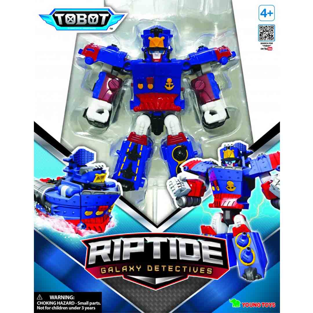רובוט לחימה מסדרת TOBOT שהופך לאוניה. הטובוטים הם כלי רכב משני צורה שהופכים לרובוטים הנלחמים בפשע. טובוט ריפטייד הופך לאוניה מדליקה! מידות רובוט: גובה כ-13 ס”מ, רוחב כ-13 ס”מ. מתאים לגילאי 4 ומעלה.