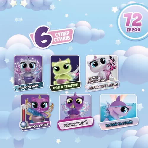 מה יכול להיות מקסים יותר מהיצורים האגדתיים האלה? תינוקות מגיעים בכל הצבעים והסגנונות השונים, ויש אפילו דמויות שאתה צריך לרחוץ קודם כדי לגלות באיזה צבע הן! ולכל גיבור יש את הכנפיים המדהימות שלו!