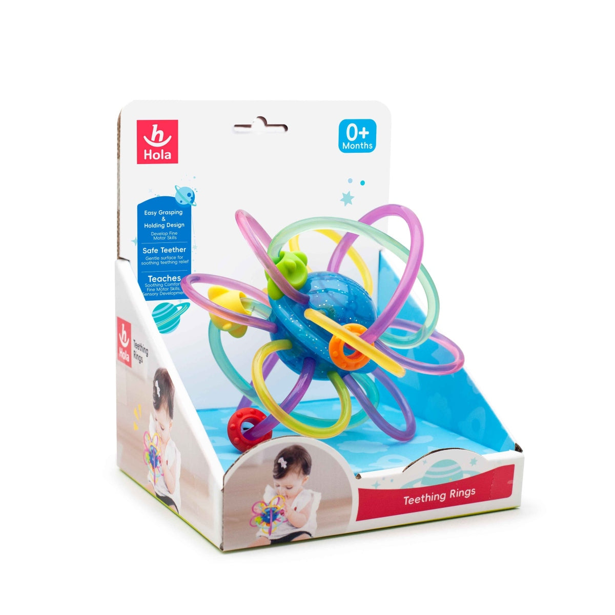 כדור טבעות נשכן של המותג HOLA. נשכן רעשן טבעות רך בעיצוב צבעוני, הטבעות גמישות עם קצוות מעוגלים. הנשכן רך ובעל מרקם עדין להקלה והרגעה על בקיעת שיניים. עיצוב קל לאחיזה ואחיזה, הצעצוע יתרום לילדכם ללמוד לתפוס, לנער ולהחזיק חפצים, דבר שמסייע לפעוט בפיתוח חוש המישוש, בפיתוח מיומנויות מוטוריות עדינות וגסות כאחד, הכדור הכחול הפנימי במרכז ישמיע רעשים כאשר הנשכן מסתובב. זהו הצעצוע המושלם לקידום אחיזה ומשחק בשתי ידיים עבור הפעוטות. ניתן לניקוי בקלות המוצר עשוי מפלסטיק יציב ואיכותי. מידות אריזת המוצר : 17.5*13*14.3 ס"מ. מתאים לפעוטות מגיל לידה ומעלה. מיוצר בסין.