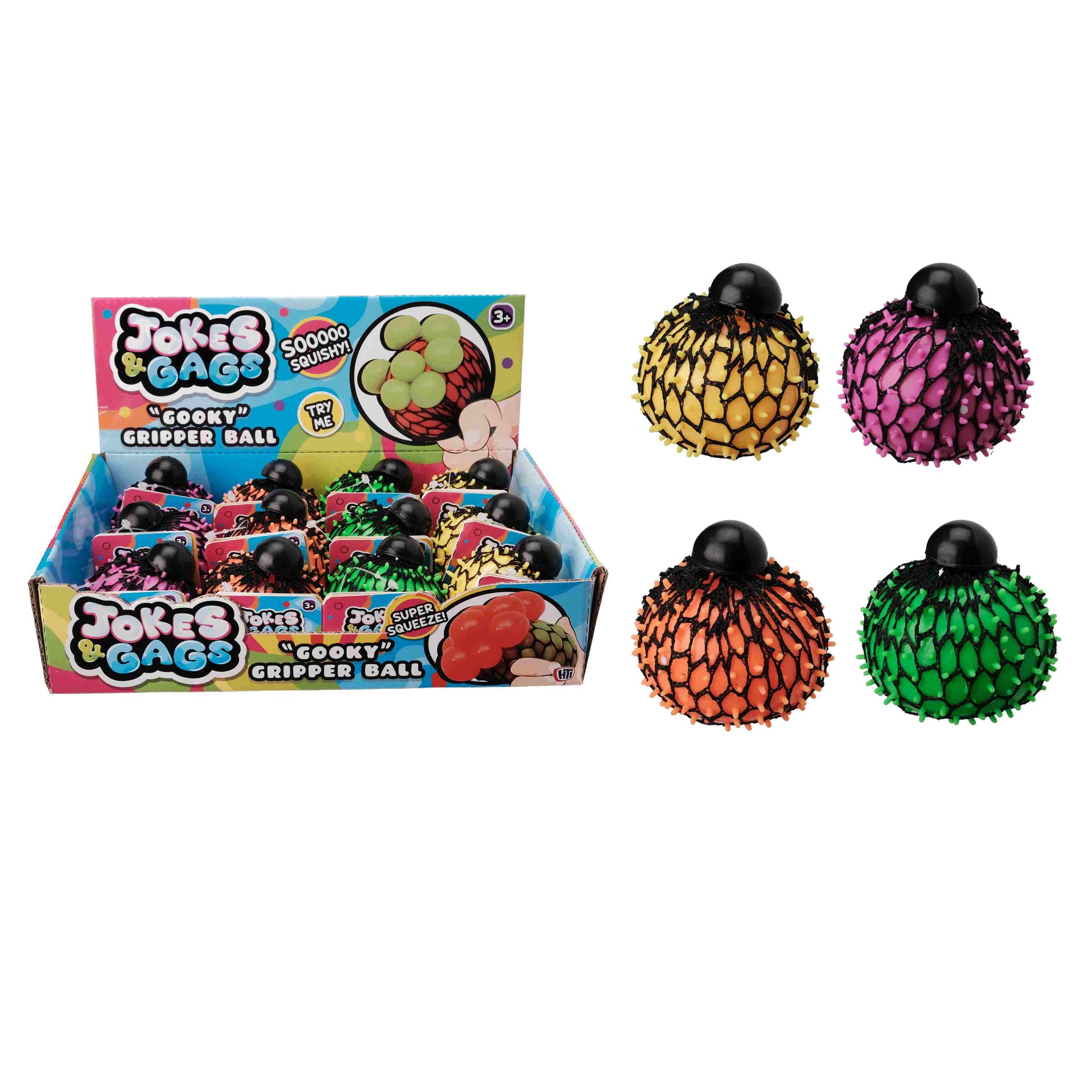 לחיצה אחת – ואתם מכורים! לחצו על כדור ה־Gooky Gripper וראו את הג'ל הסקווישי יוצא דרך הרשת כבועות צבעוניות. אספו את כל 4 הצבעים ותהנו משעות של משחק חושי ואינטראקטיבי. כל לחיצה מעוררת את החושים ומעודדת יצירתיות. מתאים לגילאי 3+.