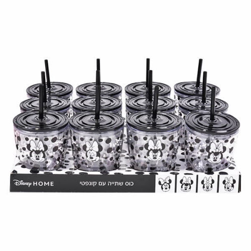 כוס שתייה עם קשית וקונפטי מיני מאוס שחור