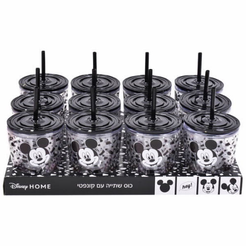 כוס שתייה עם קשית וקונפטי מיקי מאוס שחור
