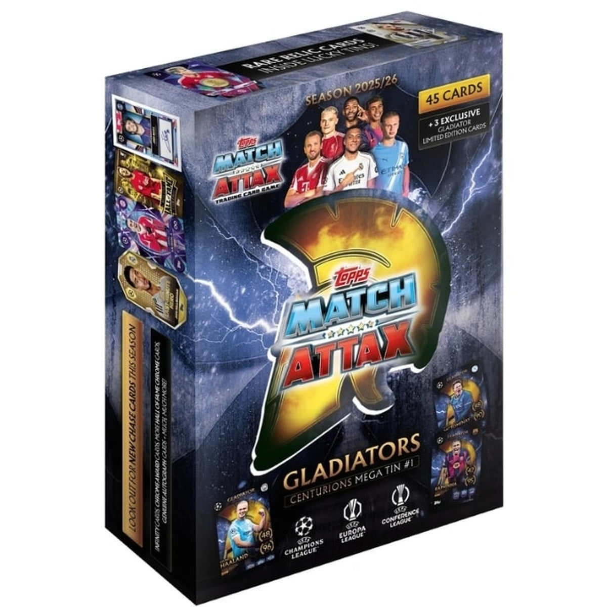 קופסת פח מהדורה מיוחדת של Match Attax ליגת האלופות 2025-2026.