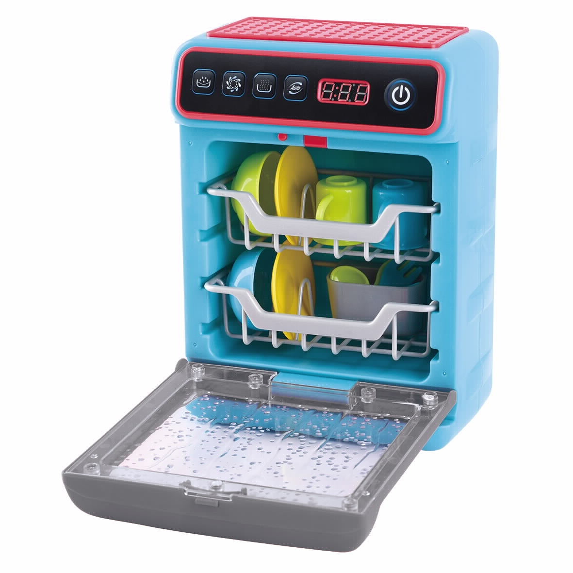 מדיח כלים עם אורות וצלילים מציאותיים. לחצו על הלחצנים בחלק העליון כדי להפעיל או לכבות את מדיח הכלים. הדלת של המדיח נפתחת ונסגרת. הסט כולל כלים וכלי מטבח שונים. המשחק מקדם מיומנויות מוטוריות ודמיון של ילדים למשחק תפקידים. מתאים לגילאי 3+ . ארץ ייצור: סין. גודל המוצר בס"מ: 19*12*25. נדרשות 2 סוללות AA (סוללות כלולות).