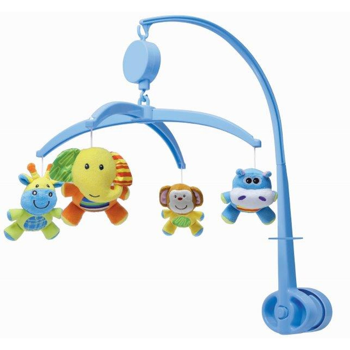מוביל מוזיקלי חיות בצבע כחול. 4 דמויות ידידותיות מסתובבות, משעשעות מרתקות את התינוק בעת הפעלת המובייל.