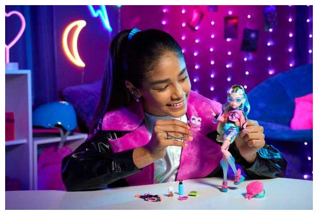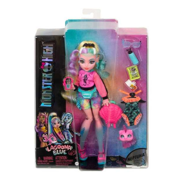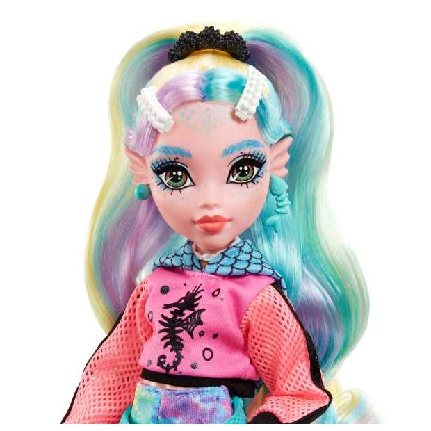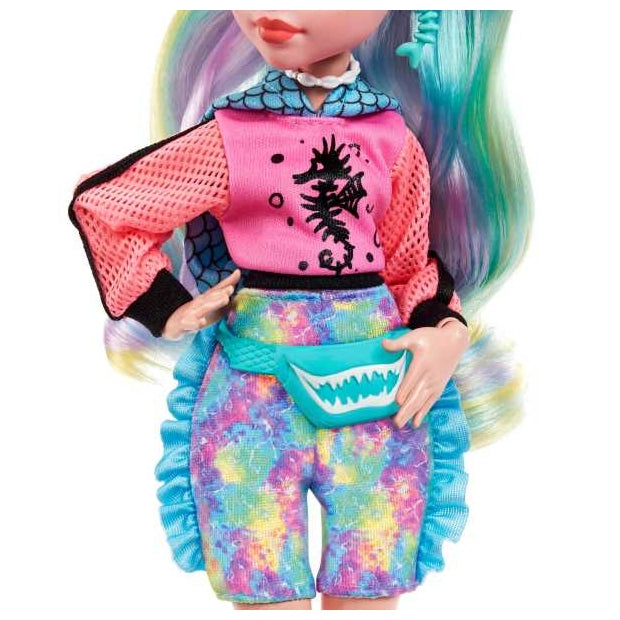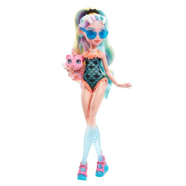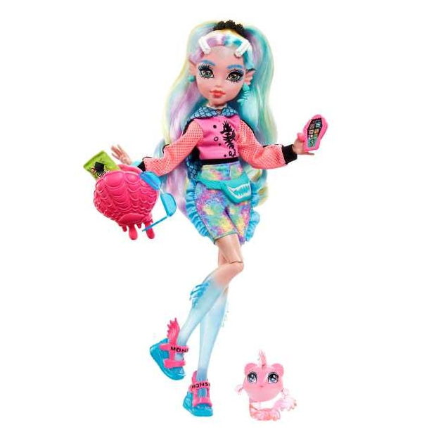 בובת לגונה מונסטר היי עם שיער צבעוני ופסים. כולל אביזרים וחיית מחמד.
