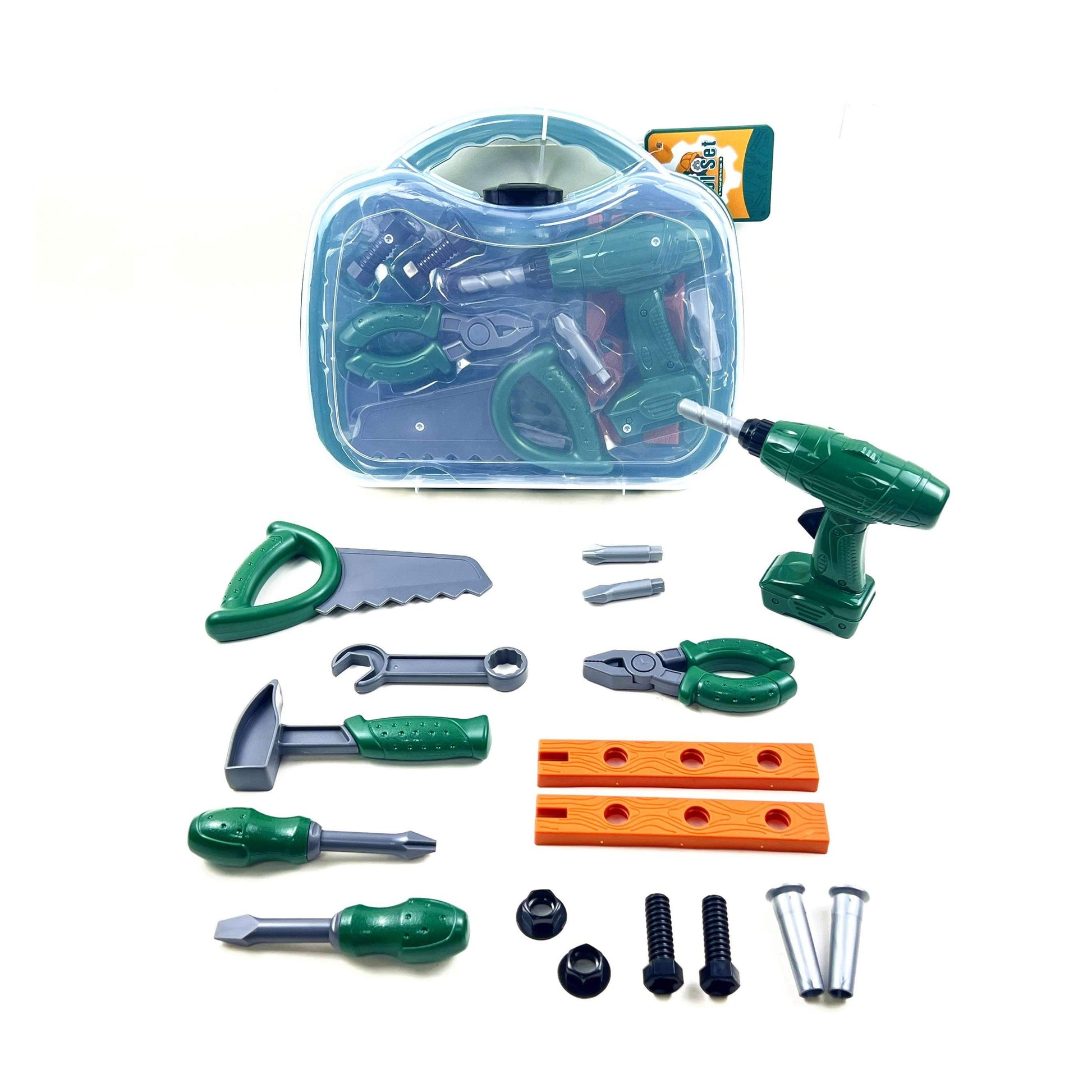 מזוודת נשיאה שקופה עם סט אביזרים לילדים הכולל 19 חלקים מגוונים: מקדחה, ברגים, פטיש, מברגים, מסור ועוד מגוון כלים. המשחק מפתח מיומנויות מוטריות עדינות ומצוין למשחקי דמיון של כלי עבודה כמו של הגדולים. מיועד לגילאי 3 שנים ומעלה. מידות המוצר (ס"מ): 32.5*27*7.5. ארץ ייצור: סין.