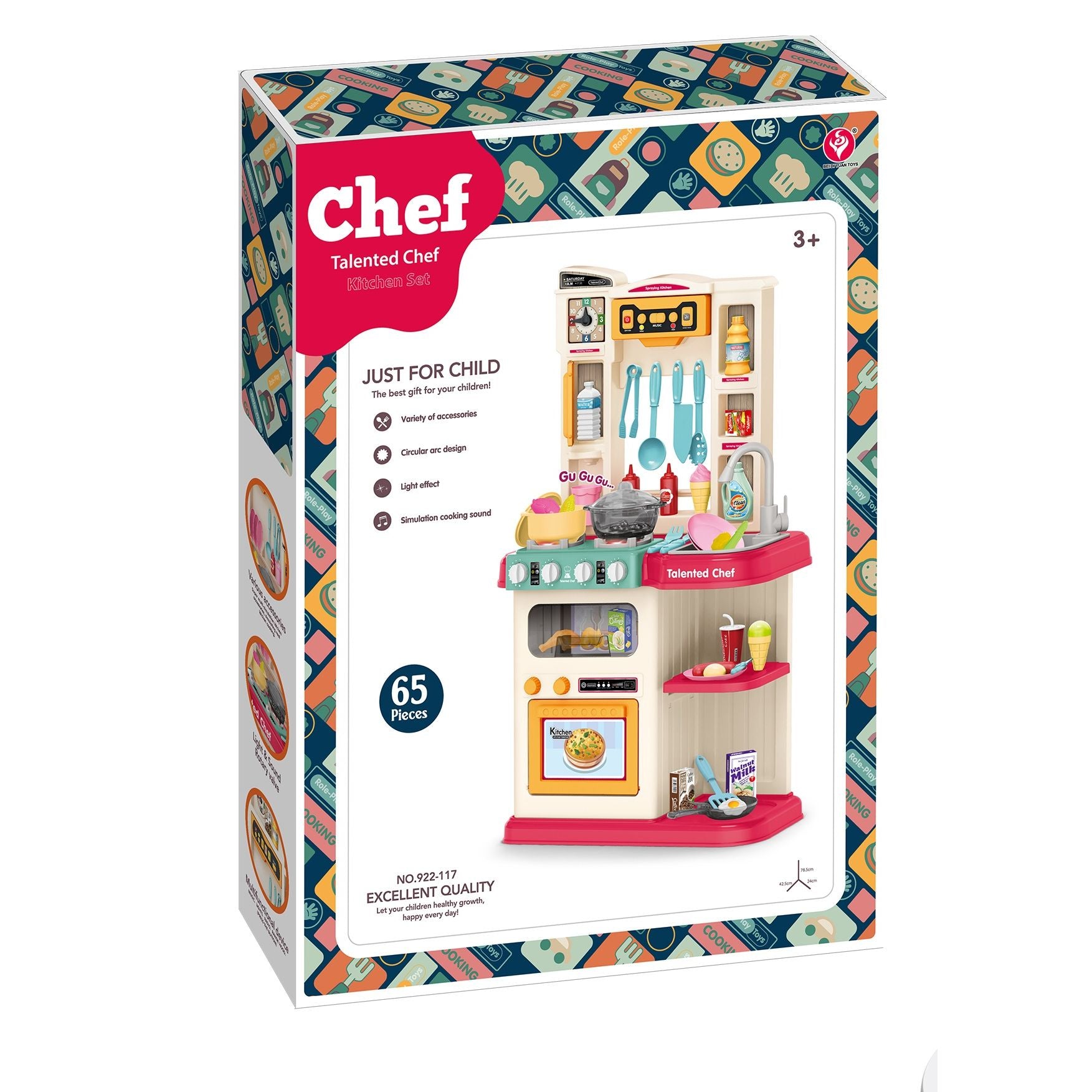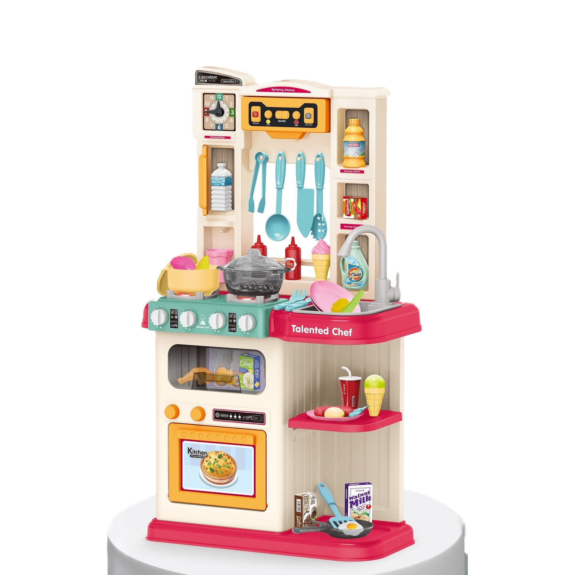 מטבח קסם המים אור וצליל 65 חלקים. הצעצוע הוא בגודל המושלם לילדים צעירים. נהדר למשחק דמיון ומשחק עם חברים. משחק זה מגביר את הכישורים החברתיים ומציג לקטנטנים את החיים האמיתיים ומדמה בצורה מושלמת חווית מטבח אמיתית. מתאים לגילאי 3+ שנים. נדרש 9 סוללות AA (לא כלולות -ניתן לרכוש בנפרד).