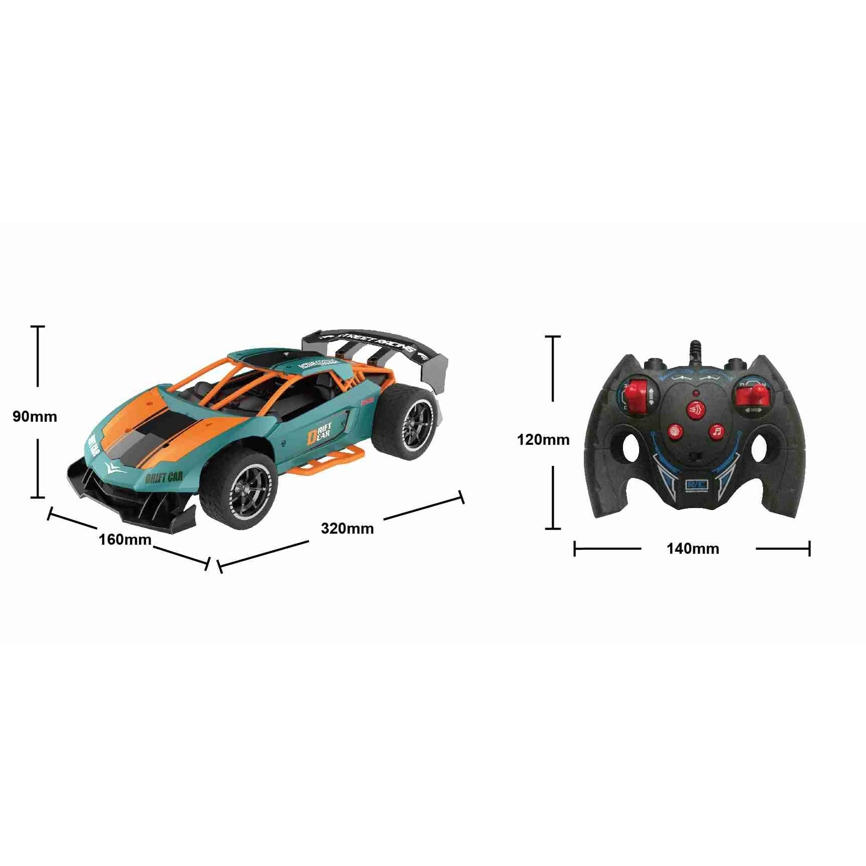 מכונית ספורט עם שלט רחוק בקנה מידה 1:14. אפקט עשן. כיווני נסיעה: קדימה, אחורה, פנייה שמאלה וימינה, זמן משחק – עד 15 דקות. מרחק שליטה: עד 25 מטר. זמן טעינה: 2 שעות. פועלת באמצעות סוללת ליתיום פנימית 7.4V בטעינת USB (כלולה) ו-2 סוללות AA (אינן כלולות – ניתן לרכוש בנפרד). שלט רחוק איכותי הפועל על תדר 2.4 גיגה-הרץ לשליטה קלה ונוחה. לגילאי 3 שנים ומעלה. ארץ יצור – סין. חומר – פלסטיק. מידות האריזה: 41.5X18.5X15 ס"מ גודל המוצר: 41.5*18.5*15 ס"מ