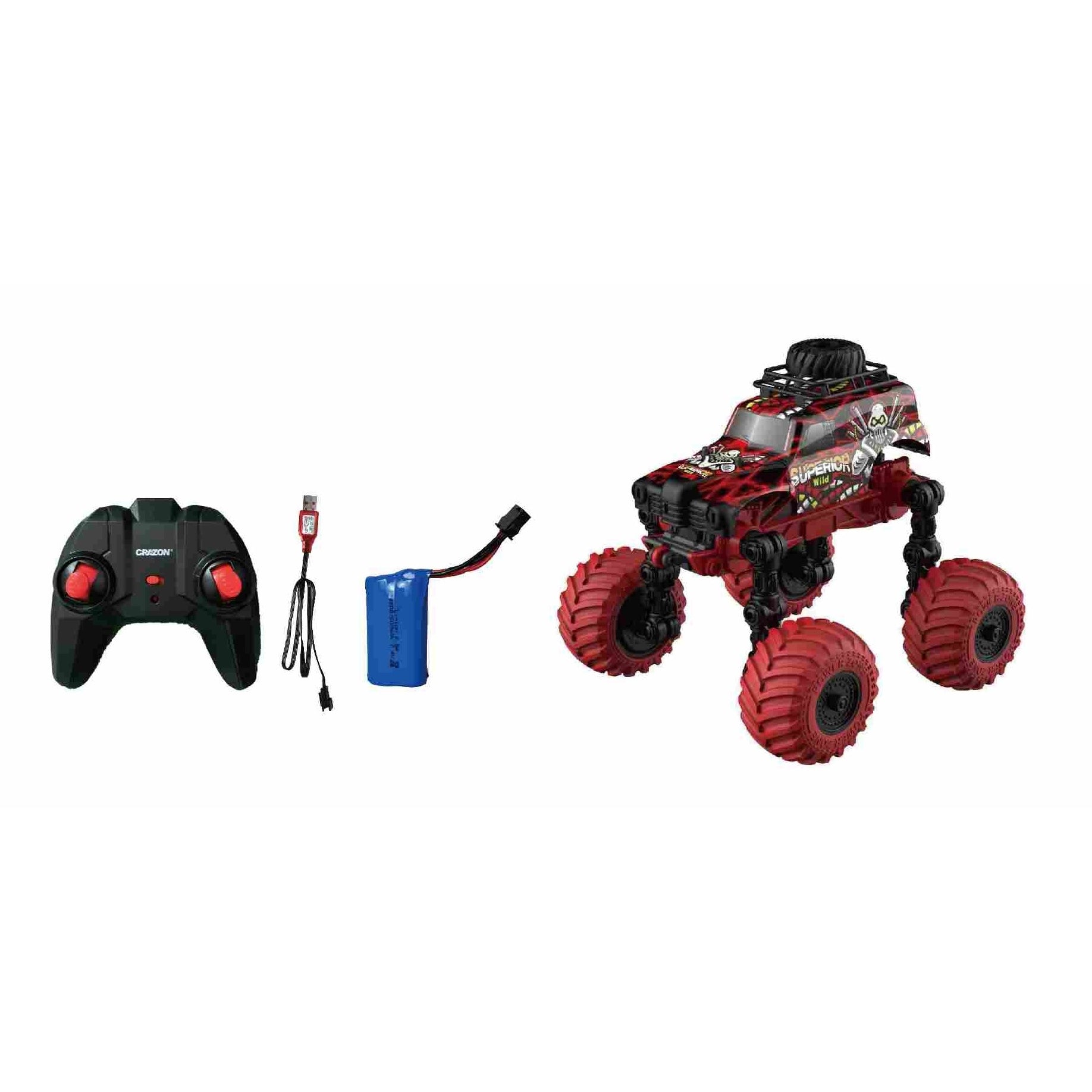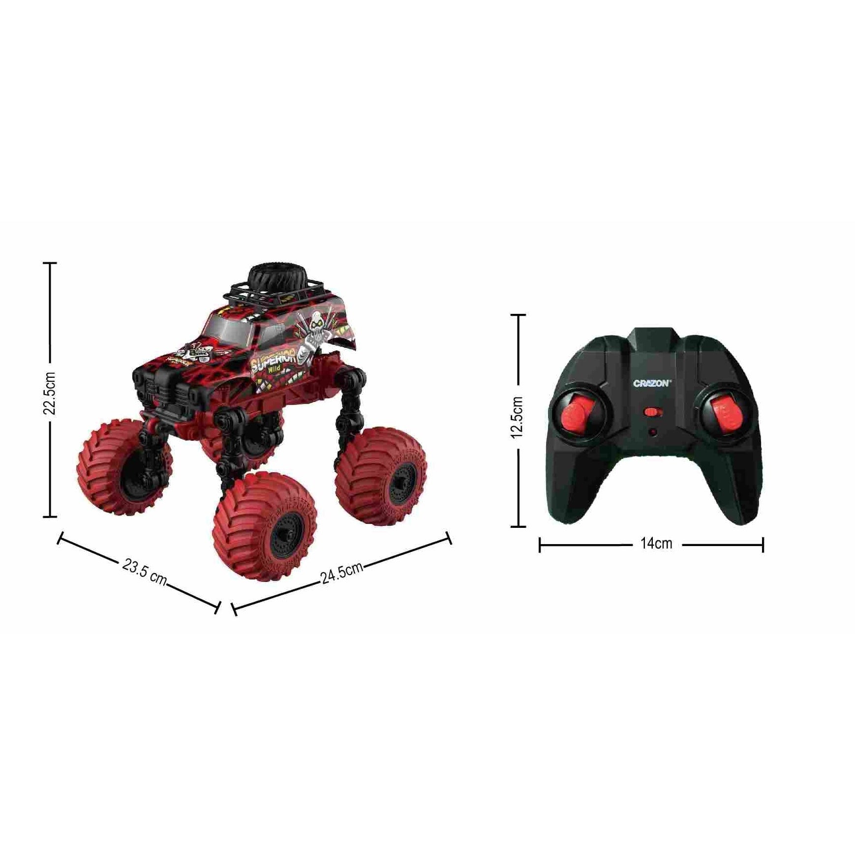מכונית עם שלט רחוק בקנה מידה 1:18. גלגלים גדולים מתקפלים. פעלולים עם שינוי צורה במפרקי הגלגלים. גלגלים מתקפלים. תאורה. כיווני נסיעה: קדימה, אחורה, ימינה, שמאלה, סיבוב 360 מעלות. המכונית יכולה להתאים את הזווית של כל מפרק כדי להשיג צורות מרובות. זמן משחק – עד 15 דקות. מרחק שליטה: עד 30 מטר. זמן טעינה: 2.5 שעות. פועלת באמצעות סוללת ליתיום פנימית 7.4V בטעינת USB (כלולה) ו-2 סוללות AA (אינן כלולות – ניתן לרכוש בנפרד). שלט רחוק איכותי הפועל על תדר 2.4 גיגה-הרץ לשליטה קלה ונוחה. לגילאי 3 שנים ומעלה. ארץ יצור – סין. חומר – פלסטיק. מידות האריזה: 46X25.5X23.5ס"מ גודל המוצר: 46*25.5*23.5 ס"מ