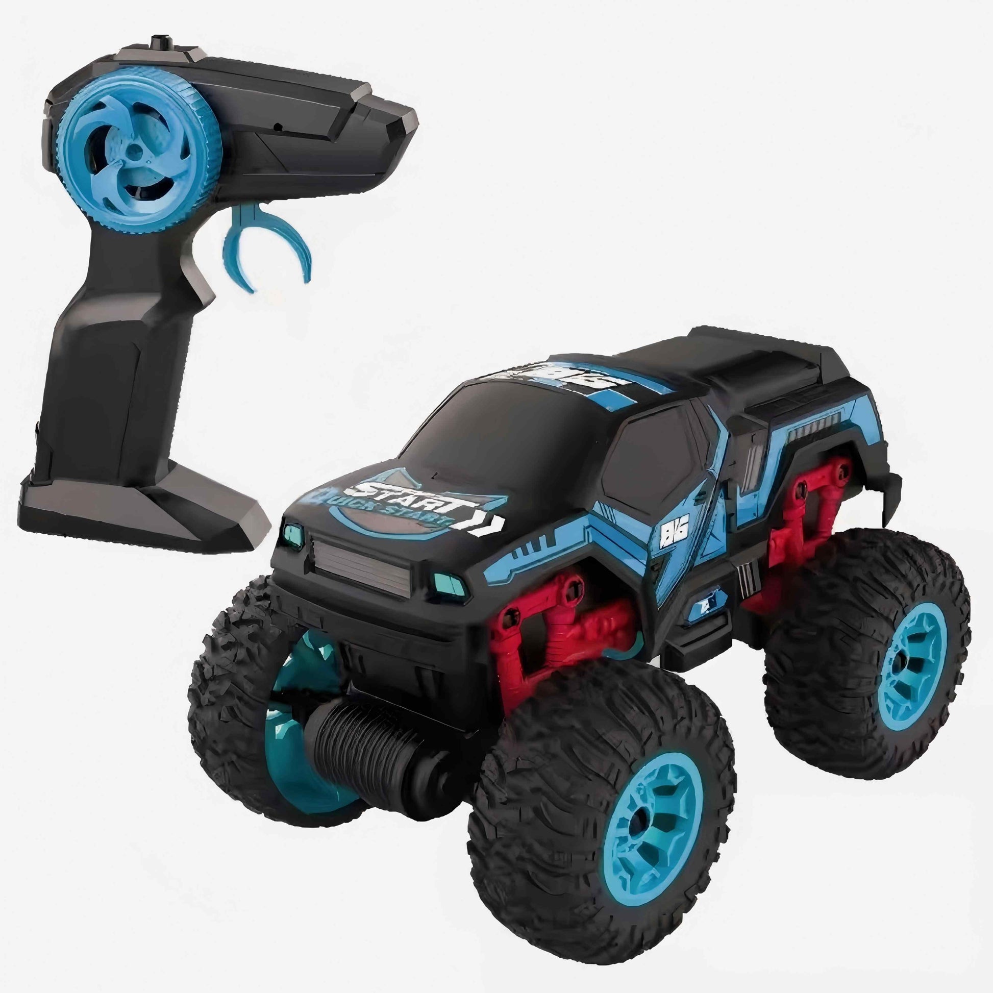 מכונית על שלט גלגלי שטח כחולה 1:16. כיווני נסיעה: קדימה, אחורה, שמאלה, ימינה. זמן משחק: עד 20 דקות. מרחק שליטה: עד 25 מטר. פועלת באמצעות סוללת ליתיום פנימית 3.7V בטעינת USB (כלולה) ו-2 סוללות AA (אינן כלולות – ניתן לרכוש בנפרד). שלט רחוק איכותי הפועל על תדר 2.4 גיגה-הרץ לשליטה קלה ונוחה. לגילאי 3 שנים ומעלה. ארץ יצור – סין. חומר – פלסטיק. גודל המוצר(ס"מ): 17.5*23.5*14.15.