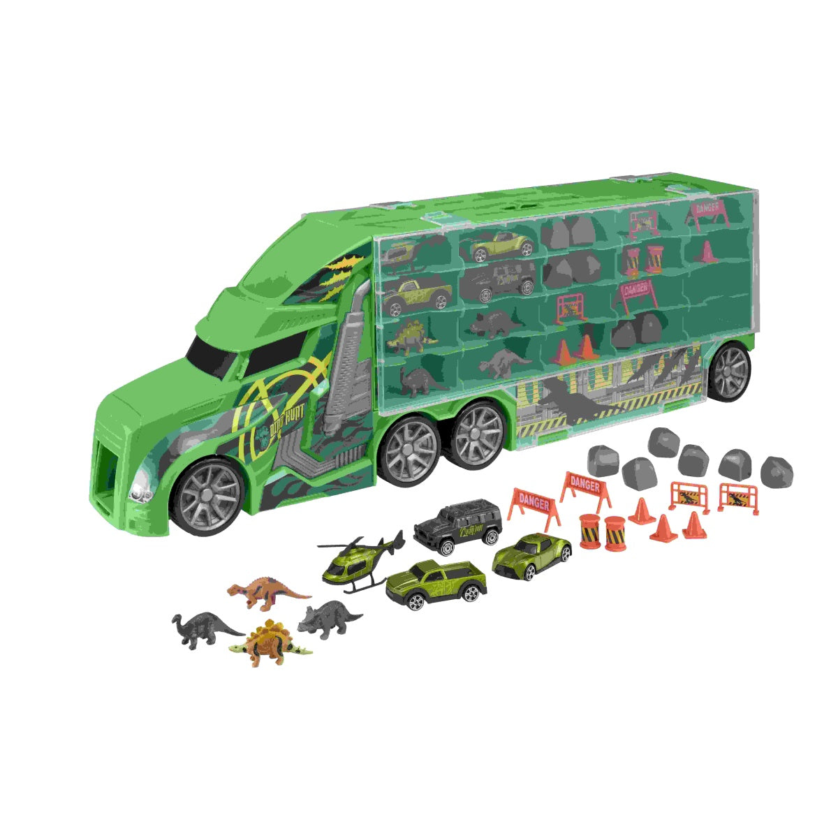 מסלול דינו במזוודה נפתחת מבית המותג Teamsterz. צאו למרוץ דינוזאורים עם ערכת המשחקים של מטרו סיטי. המוצר כולל מכונית אחת בעלת גלגלים עצמאיים הנעים בחופשיות ובגודל של כ 7.6 ס"מ. המזוודה נפתחת לערכת משחקים רב מפלסית בנושא דינו. ערכת המשחקים כוללת מעלית עבודה, מסלול, כלוב, מפרצי חניה ורמפת מילוט. הכל מתקפל לתוך מזוודת נשיאה בצורת צמיג עם ידית נשיאה, קל לקחת ממקום למקום. נותן השראה לילדכם לחקור וליהנות מהעולם הסובב אותו, מסייע להתפתחות הקוגניטיבית, המוטוריקה העדינה והמיומנויות החברתיות של ילדיכם. למשחק מלא דמיון, משחק תפקידים והנאה! מתאים לגילאי 3 שנים ומעלה. מידות המוצר : 32*11*28.5 ס"מ. מידות האריזה : 32*11*18 ס"מ. ארץ יצור- סין. חומר- פלסטיק.