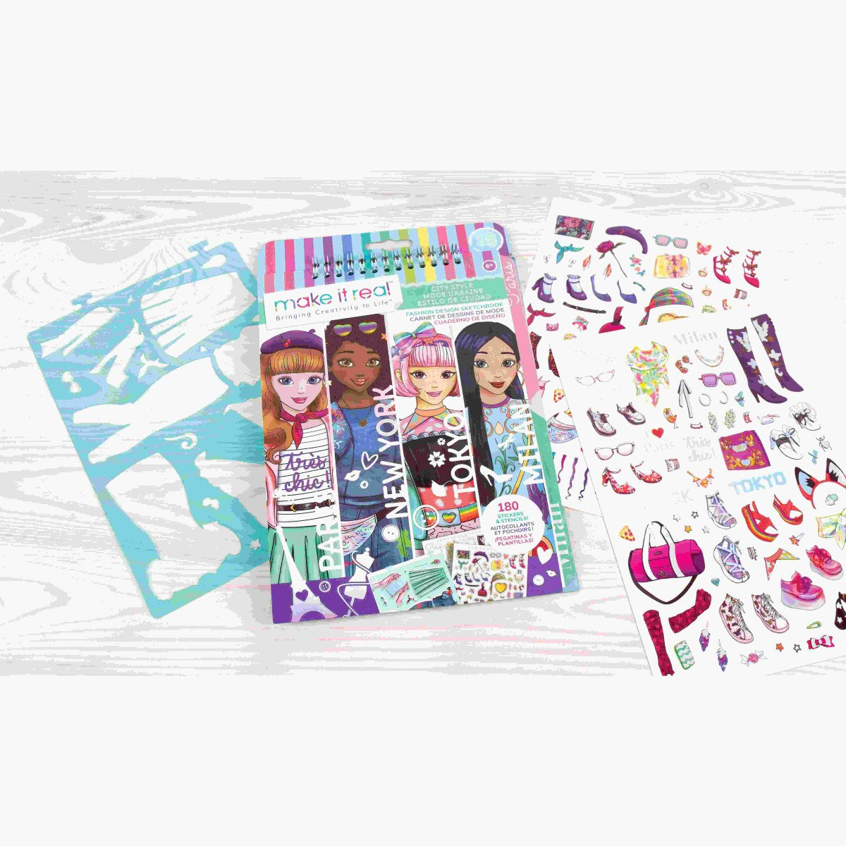 ערכת עיצוב אופנה למעצבת המתחילה עם 180 מדבקות ושבלונות מבית Make It Real.