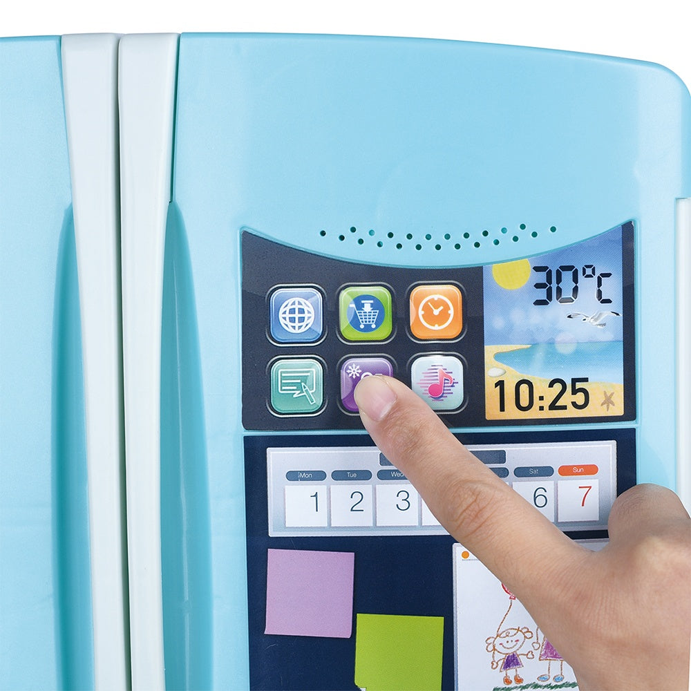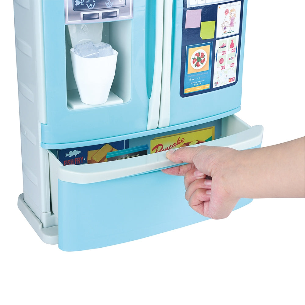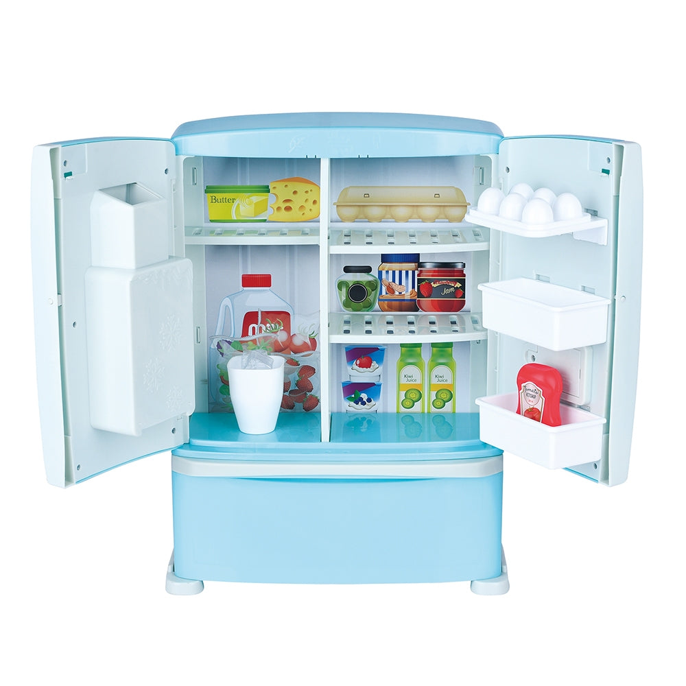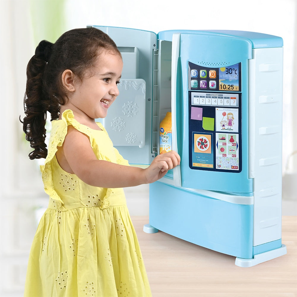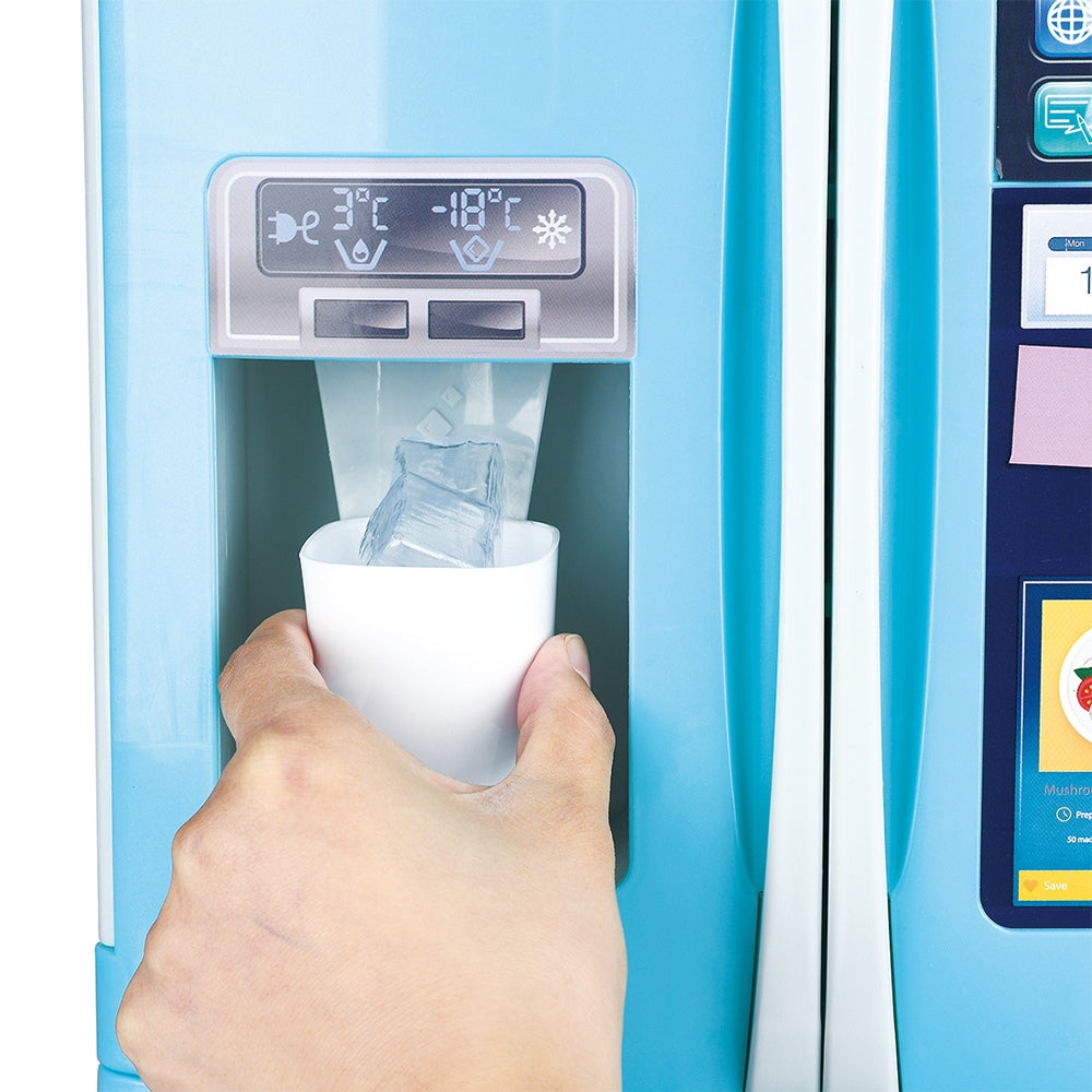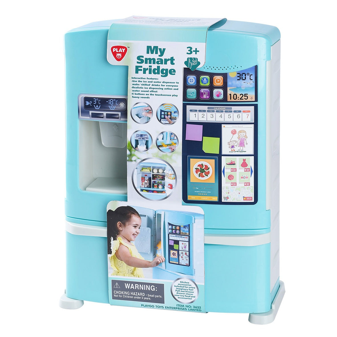 מקרר חכם למטבח עם אביזרים משולב בצבעים כחול ולבן , הילדים יכולים לשחק במשחק תפקידים ולהעמיד פנים שהם מבשלים ומכינים אוכל בדיוק כמו המבוגרים. מקרר חכם בעיצוב אלגנטי ומודרני בעל שתי דלתות מיועד למשחק תפקידים מלא בתכונות אינטראקטיביות: מתקן "קרח" פונקציונלי, דלת מקפיא נפרדת. כולל אפקטים של צלילים מציאותיים כמו ריסוק קרח, הוצאת מים, צפצוף ועוד. משחקי תפקידים, הכנת אוכל וביצוע מטלות בית אחרות עוזרים ומלמדים את הילדים להיות אחראיים ומאפשר לילדים מרחב גדול לבטא את הדמיון שלהם ולפתח מיומנויות מוטוריות. זהו חלק חשוב בלמידה חברתית-רגשית. מוצרי Playgo הם צעצועים העשויים מפלסטיק דרגה A תוך שימוש בצבע לא רעיל, שאינו מזיק לילדים. צבעים בהירים נעימים לעיניים. ללא קצוות חדים. נדרשות 3 סוללות AAA (הסוללות כלולות). מיוצר בסין. חומר-פלסטיק. לגילאי 3 שנים ומעלה. מידות אריזה: 13*39.5*28.5 סמ. הערכה כוללת : מקרר, 3 אריזות מזון, תבנית ביצים, כוס, קוביות קרח ו-2 מגשים למקרר. שאר האביזרים בתמונות הם לצורך המחשה בלבד ואינם כלולים במוצר.