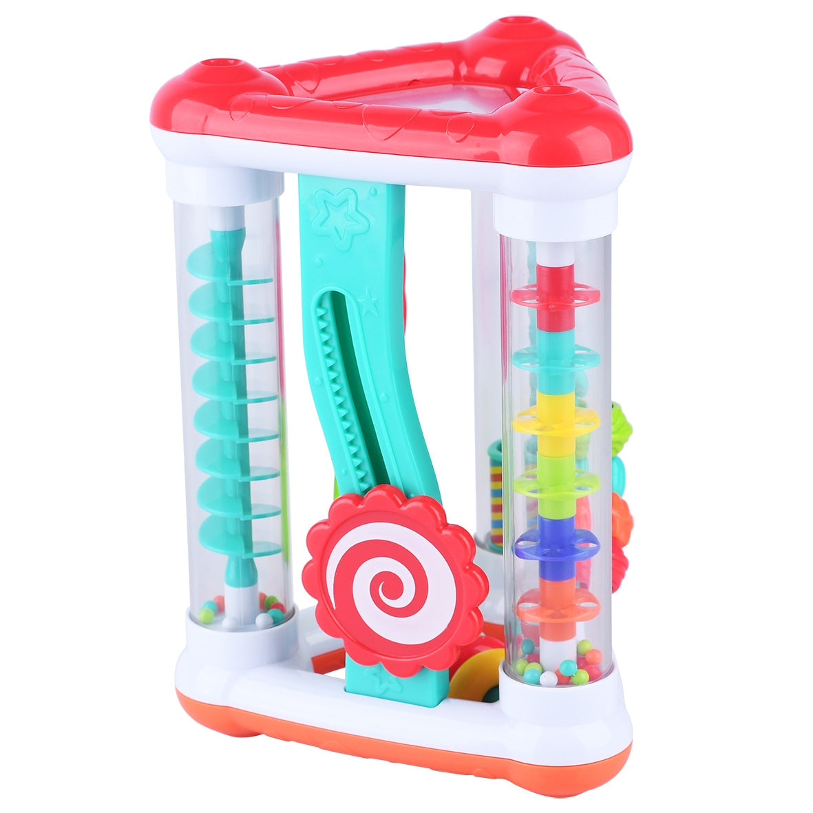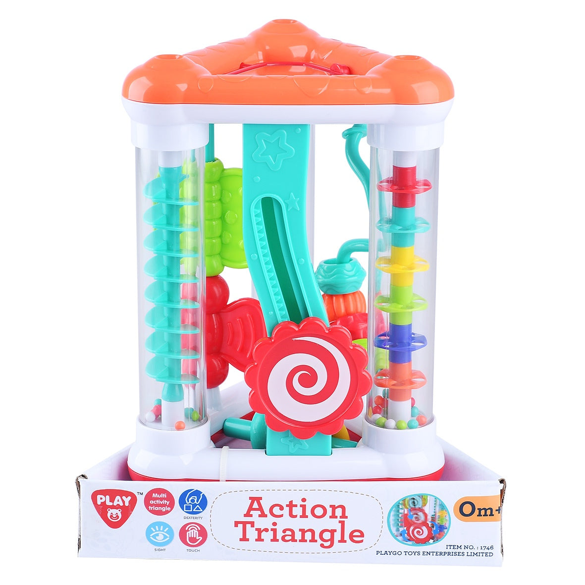 צאו למסע גילוי מהנה עם המשולש הצבעוני של פלייגו. גלו ספירלות וצורות מסתובבות שונות. הביטו במראה הקטנה, סובבו את המנופים והופתעו מהצלילים השוקקים. עוזר לפתח את כישורי המוטוריקה, המגע, הראייה והדמיון של התינוקות. מתאים לגילאי 0+ חודשים . ארץ ייצור: סין. גודל המוצר בס"מ: 20*17*4.