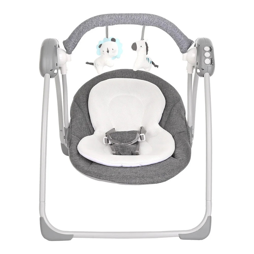 נדנדה רוטטת לתינוק בצבעים אפור ולבן מבית המותג FITCHBABY. מתאימה לשימוש מגיל לידה ועד משקל מקסימלי 9 ק"ג או עד שהתינוק יכול להתרומם על ידיו ועל ברכיו ומתחיל לשבת בכוחות עצמו. נדנדה בעלת רגליים חזקות לנדנוד עדין של התינוק כוללת מוט צעצועים, מנגנת ורוטטת לפיתוח חושיו וסקרנותו של התינוק. התנועות הטבעיות של התינוק גורמות למושב להתנדנד בעדינות! הנדנדה כוללת מושב עמוק בעיצוב מודרני מרופד בפשתן ברובו, בד נושם, רך ונעים. את הריפוד ניתן להוציא ולנקות אותו בנפרד. פונקציית מוזיקה ופונקציית רטט מנחם ומרגיע. 2 מצבי הפעלה : רטט/ מוזיקה. מוט צעצועים (ניתן לשליפה) הכולל 2 צעצועים רכים נתלים, מעודדים את התינוק להתרומם ולרצות לתפוס את הצעצועים בידיו, לשיפור תיאום קשר עין-יד, האחיזה והרפלקסים החזותיים. רתמות בטיחות 3 נקודות מתכווננות. ניתן לקיפול קומפקטי ולאיחסון בצורה נוחה שלא תופסת הרבה מקום. הרכבה פשוטה, כולל הוראות בעברית. נדרשות 4 סוללות AA (לא כלולות- ניתן לרכוש בנפרד). ארץ ייצור - סין. המסגרת עשוייה מפלסטיק. הרכב בד הריפוד - 80% פשתן 20% פוליאסטר. הרכב בד הצעצועים - 100% קטיפה. מידות המוצר : 65*75.5*53 ס"מ. מידות האריזה : 50.5*50*59 ס"מ