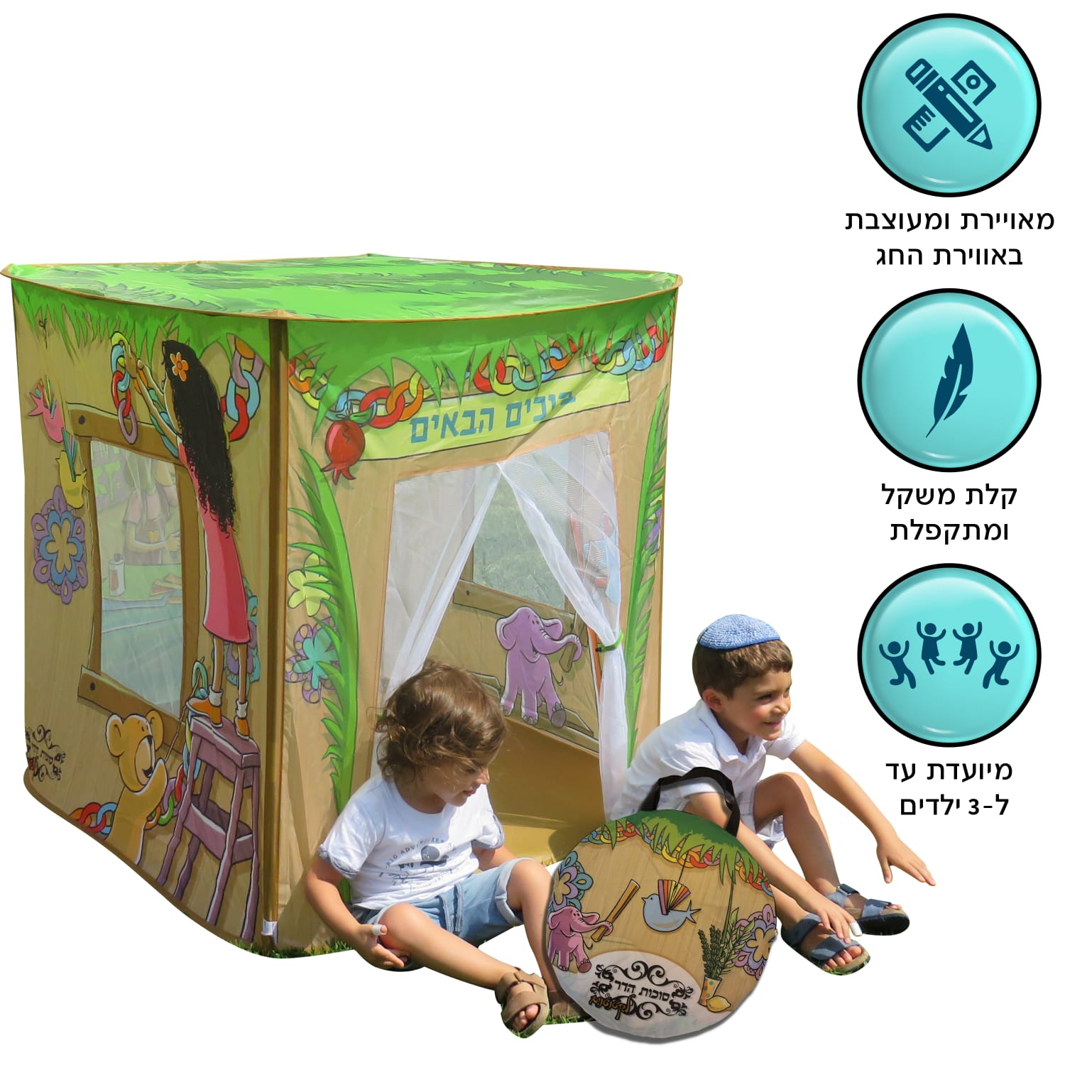 ‏ סוכה שאותה הילדים יכולים לפרק ולהרכיב בעצמם.