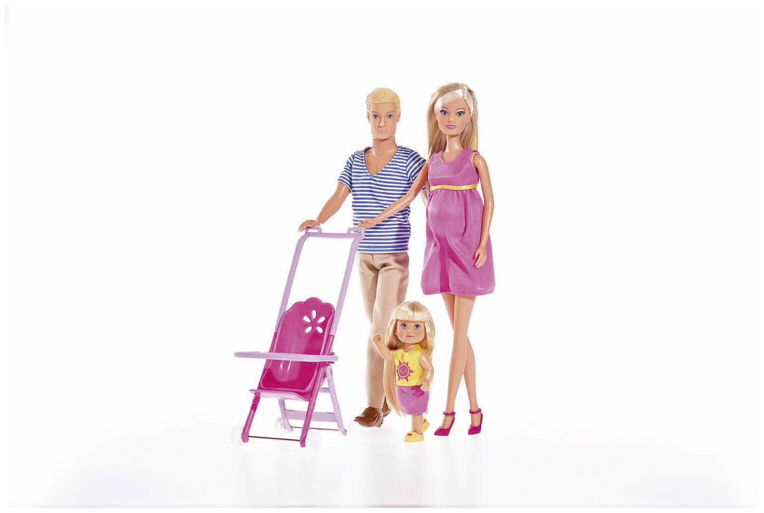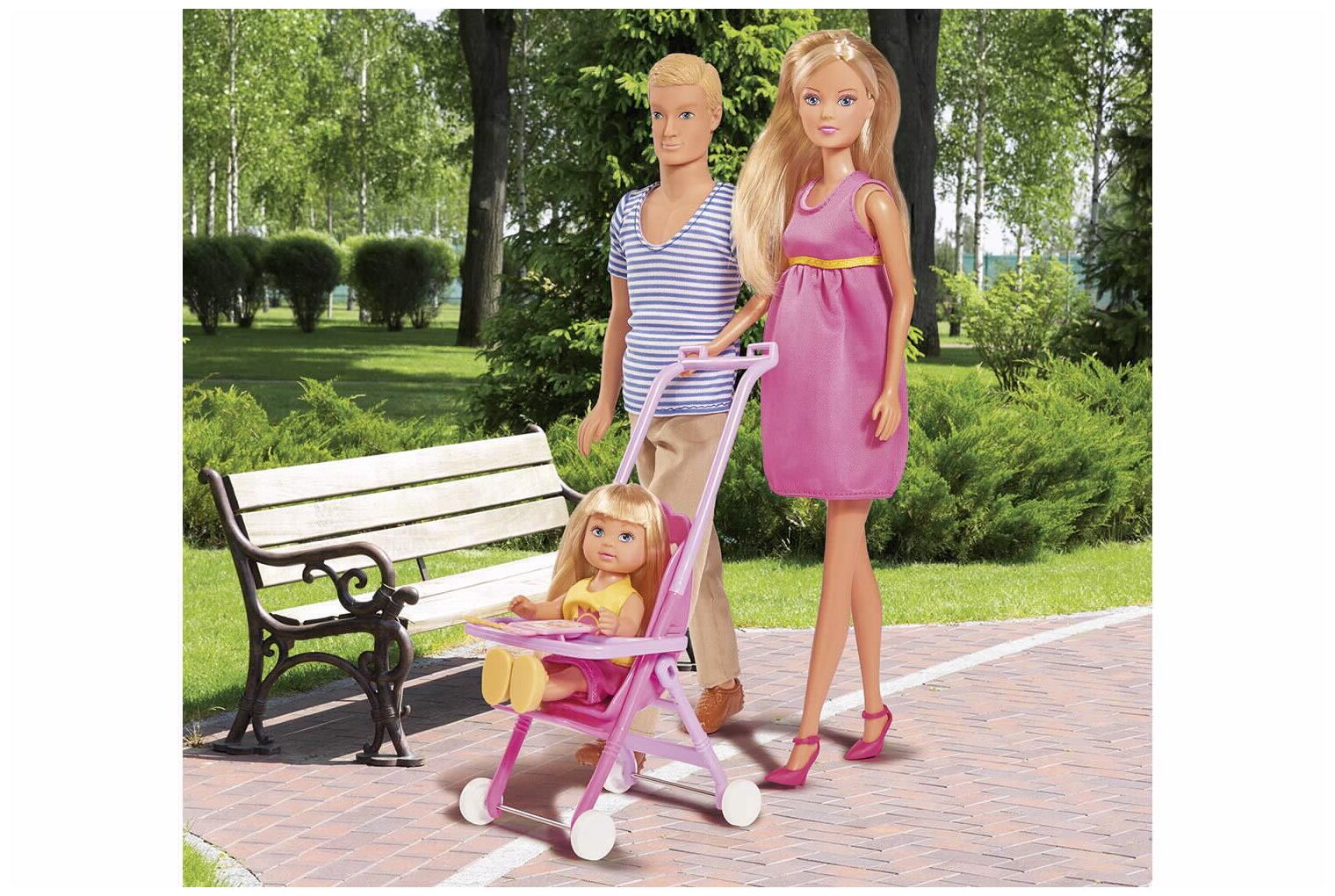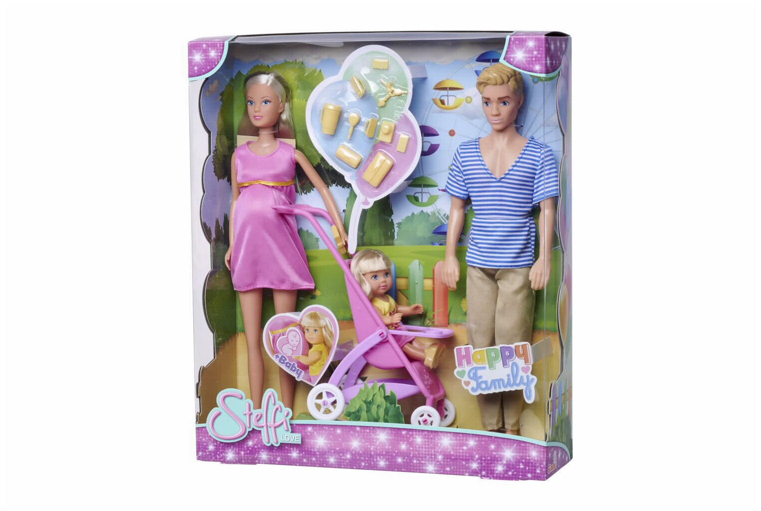 משפחת הבובות הכי מתוקה בעיר! סט משפחה של סטפי עם אבא, ילדה קטנה ועגלת תינוק – כולל אביזרים ולוק מושלם לזמן משחק מלא דמיון.