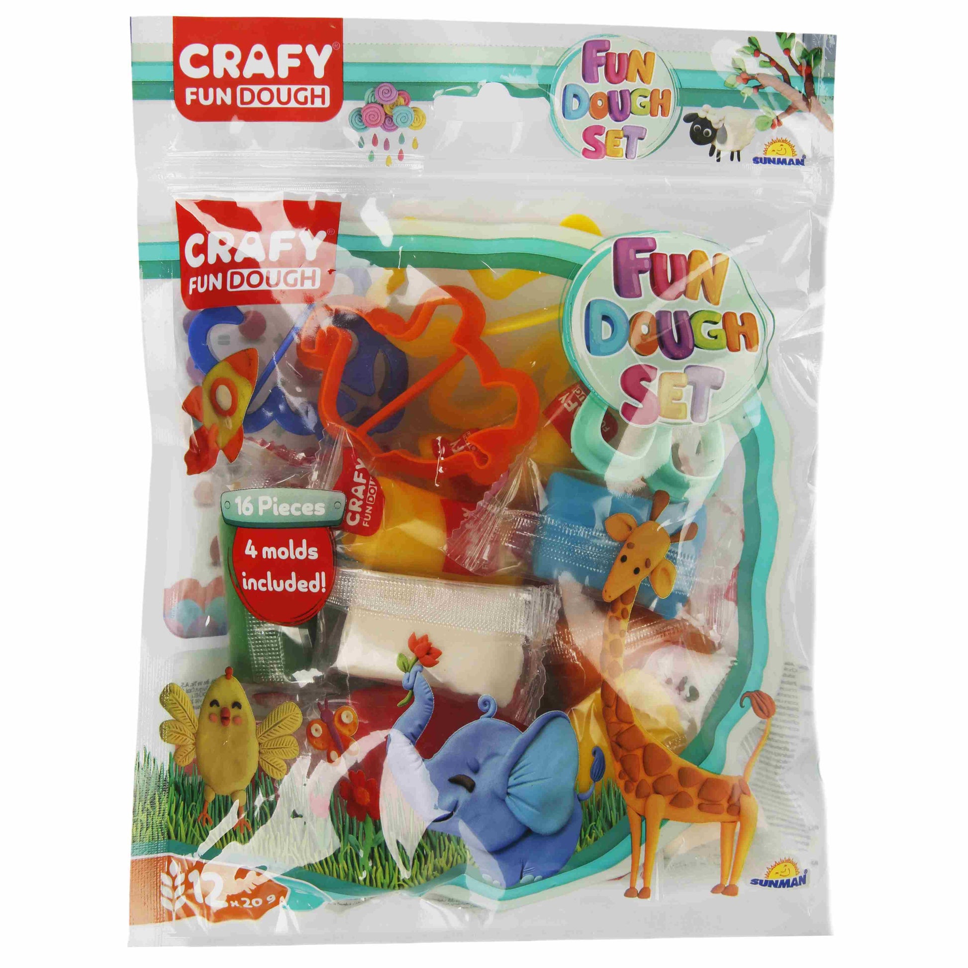 בצק ואביזרים לעיצוב בבצק בשקית של המותג Crafy מבית SUNMAN. הסט כולל 4 חותכנים צבעוניים ו- 12 צבעים שונים של בצק במשקל כולל של 240 גרם • מאפשר לילדים לעצב, ללוש וליצור בבצק. עם הבצק אפשר להשתמש כדי ליצור צורות ואובייקטים שונים ללא הגבלה. • הבצק אינו מלכלכך ואינו נוזלי. ניתן לעיצוב מחדש שוב ושוב. • הבצק עשוי מחומרים באיכות מעולה, רכים, נעימים למגע ובטוח לשימוש! • ניתן לערבב צבעים שונים כדי לקבל יותר צבעים • יש לאחסן במקום קריר. • אם המסה התקשתה, אפשר להוסיף מעט מים ולערבב היטב. • המוצר בטיחותי לשימוש. אינו רעיל. •האביזרים עשויים מפלסטיק יציב ואיכותי. יתכן שהצבע יהיה שונה מהצבע המוצג בתמונה. מידות האריזה : 24*3.5*19.5 ס"מ מתאים לילדים מגיל 3 שנים ומעלה.