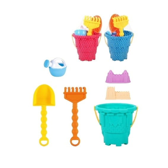 סט דלי עם אביזרים למשחק בחול. הסט כולל: דלי עם ידית נשיאה, משפך, מגרפה, כף ותבניות של ארמונות. בדלי תוכלו גם לאחסן את כל התכולה ולקחת אותם ממקום למקום בקלות. למשחק מהנה וכייפי לילדים. מתאים לשימוש לגילאי 3+. ארץ ייצור: סין. גדול המוצר (ס"מ): 17*17*16.