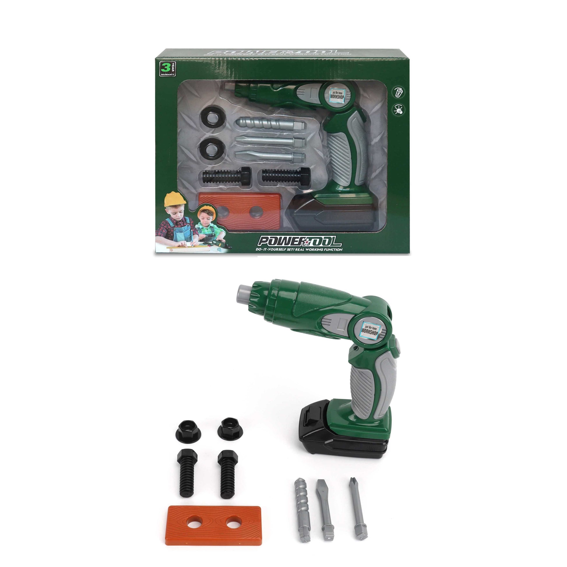 סט מקדחה לילדים הכולל 9 חלקים: מקדחה, ראשים מתחלפים למקדחה וברגים שונים. המשחק מפתח מיומנויות מוטריות עדינות ומצוין למשחקי דמיון של כלי עבודה כמו של הגדולים. מיועד לגילאי 3 שנים ומעלה. מידות המוצר (ס"מ): 25.5*9*5.5. ארץ ייצור: סין. נדרשות 2 סוללות AA (הסוללות אינן כלולות – ניתנות לרכישה בנפרד).
