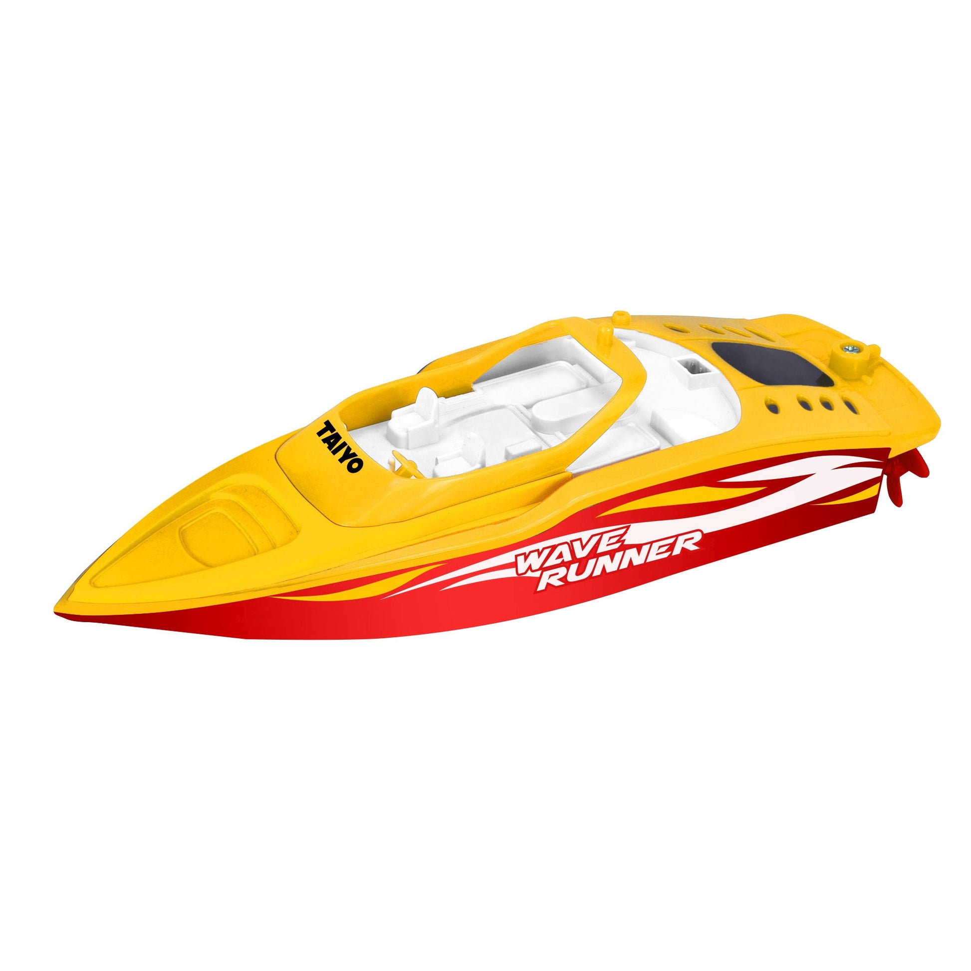 סירת מירוץ בצבע צהוב ואדום עם שלט רחוק, עוצמתית ובעלת ביצועים מדהימים. לסירה מנועים כפולים והיגוי קל לילדים. הסירה פועלת באמצעות 4 סוללות AA לשלט (לא כלולות – ניתן לרכוש בנפרד) וסוללת -2.4V (כלולה) נטענת. מתאים לילדים מגילאי 8 שנים ומעלה. מיוצר בסין. מידות הסירה : רוחב 15 ס"מ עומק 4.7 ס"מ גובה 3.5 ס"מ. מידות אריזה : רוחב 22 ס"מ עומק 11.5 ס"מ גובה 10.50 ס"מ.